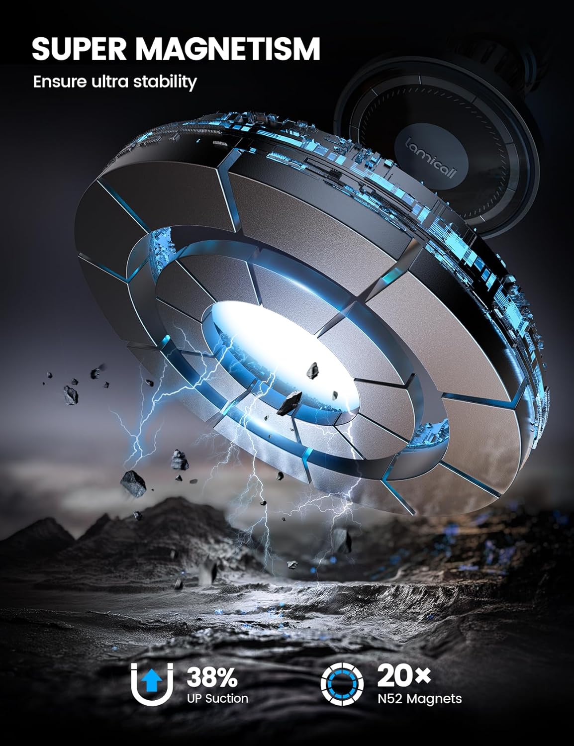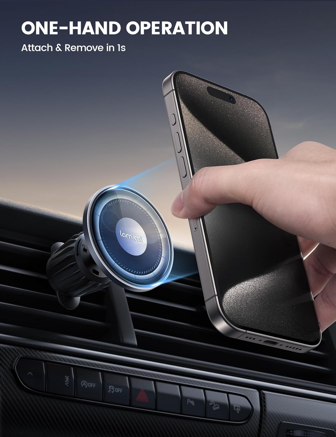 Elevate your driving experience with the Lamicall Car Phone Holder for MagSafe, designed for ultimate convenience, safety, and style. Featuring a 2025 HD Glass Panel, this phone mount delivers a sleek, smooth, and translucent surface with a protective silicone edge that safeguards your device from scratches.