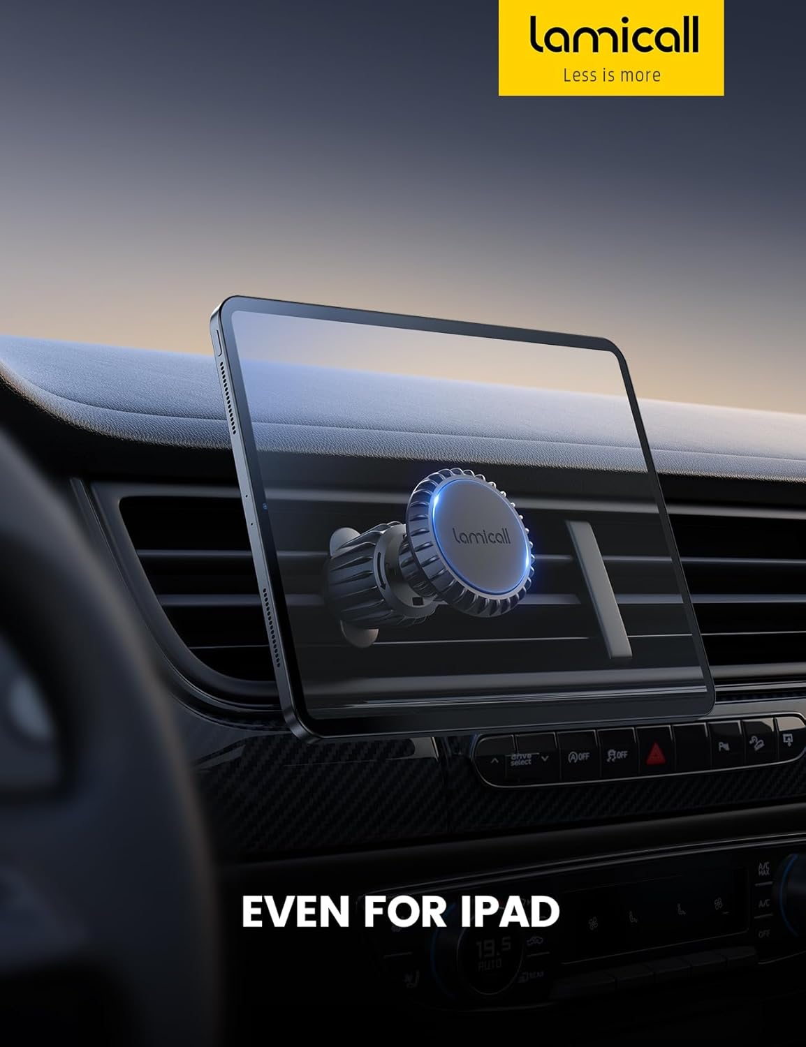 Our Lamicall Magnetic Car Phone Holder Vent provides powerful magnetic strength, secure attachment, and flexible 360° adjustability for hands-free driving convenience. Featuring six upgraded N52 magnets with a 27% stronger magnetic matrix, it keeps your phone stable on rough roads, during sharp turns, or sudden braking. The secure triple-lock hook design ensures a tight grip on the air vent blade, while its compact build saves space without blocking your view. This universal mount is compatible with all smartphones, making it the ideal magnetic solution for modern drivers.