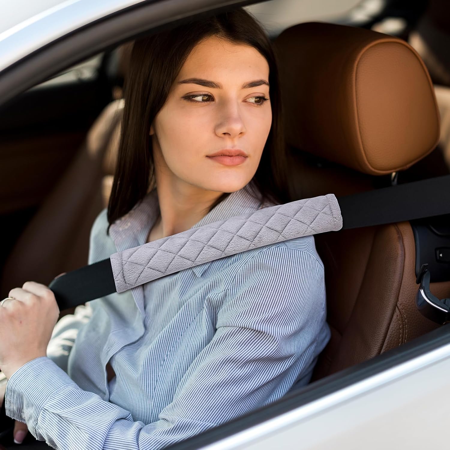 Our Lanjue 4PCS Grey Seat Belt Strap Covers provide superior comfort and protection for both adults and children during travel. Crafted from ultra-soft plush material, these seatbelt pads prevent shoulder marks and reduce friction, ensuring a more enjoyable and comfortable ride. Each pad measures 25 cm long and 6 cm wide, making it compatible with most car seat belts. The simple wrap-around design allows quick installation and easy adjustment for your preferred position, offering excellent versatility for use with car seat belts, backpacks, shoulder bags, or camera straps.