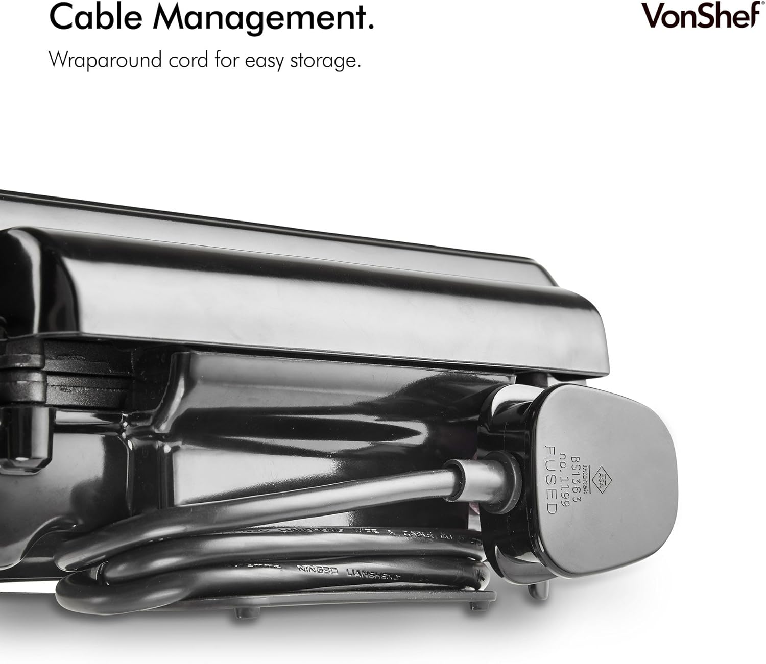 Cook 4 waffles at once, ideal for family or entertaining
