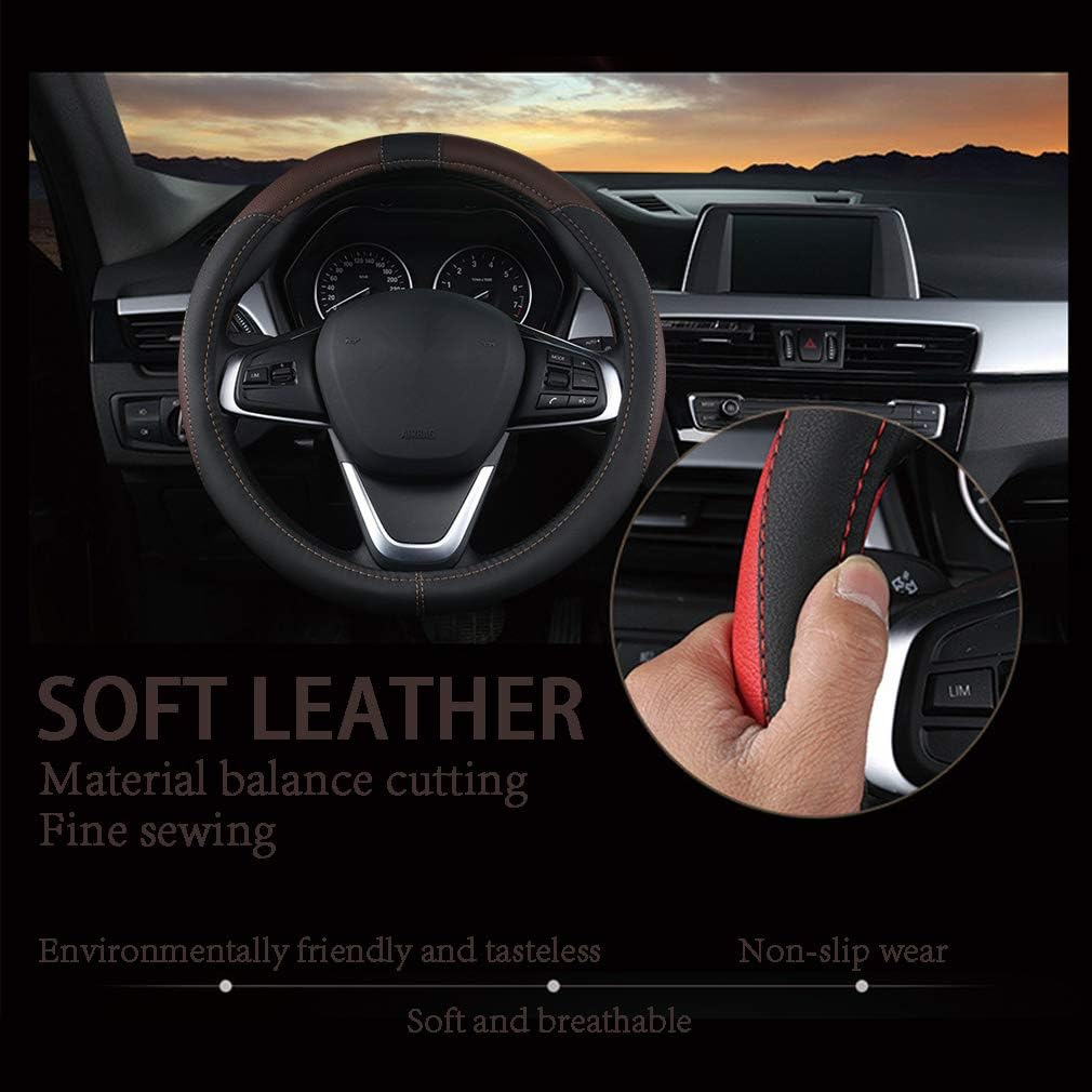 Our Leather Car Steering Wheel Cover is designed to enhance driving comfort and style for your vehicle. Crafted from premium PU leather with a natural rubber inner, it offers a soft, durable, and non-slip grip that is comfortable for all seasons. The breathable microfiber leather ensures excellent heat and cold resistance, keeping your hands cool in summer and warm in winter. Designed for universal compatibility, it fits most car, SUV, van, and truck steering wheels with diameters ranging from 14.5 to 15 inches. Its sleek, sporty, and luxurious look adds sophistication to your car’s interior while ensuring a firm grip and safe driving experience.