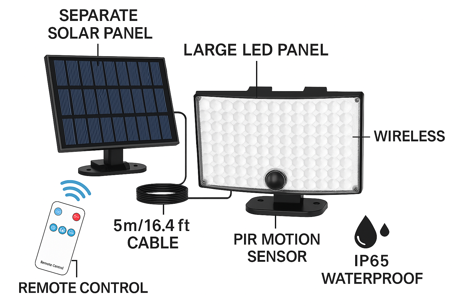 Our Outdoor LED Solar Light with PIR Motion Sensor and Remote Control offers powerful, eco-friendly lighting for gardens, patios, fences, and driveways. Featuring an upgraded high-capacity solar panel and IP65 waterproof construction, this smart light ensures efficient charging and year-round reliability. Equipped with a sensitive PIR motion sensor and a remote control for easy adjustments, it’s designed to deliver customizable illumination for safety and convenience in any UK outdoor space.