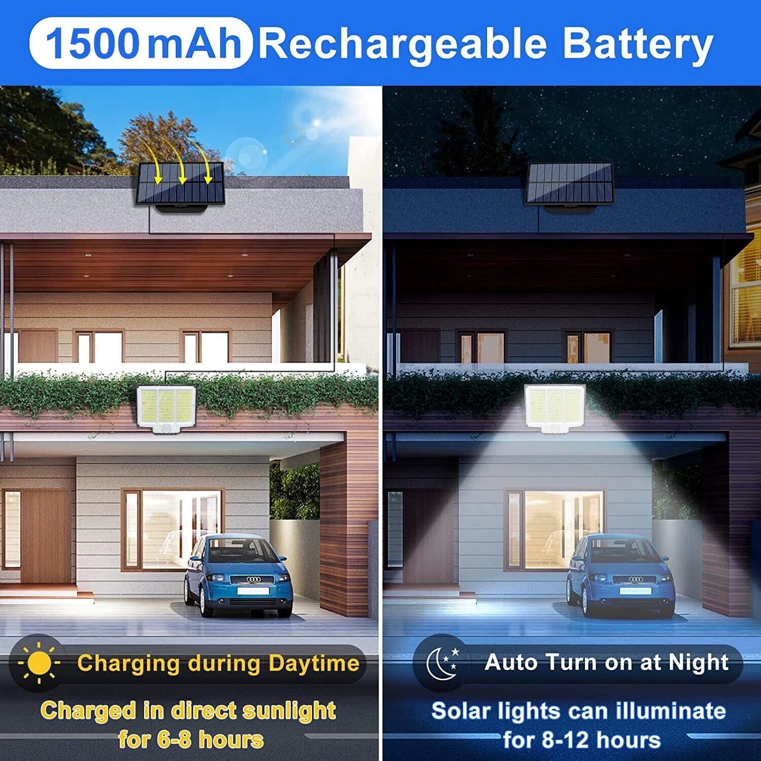 Built with IP65 waterproof high-impact ABS plastic, it stands up to rain, snow, and heat, making it ideal for gardens, garages, porches, and pathways. Its PIR motion sensor detects movement instantly, providing bright security lighting while conserving energy when not in use. The dusk-to-dawn function automatically charges the solar panel during the day and lights up your space at night.