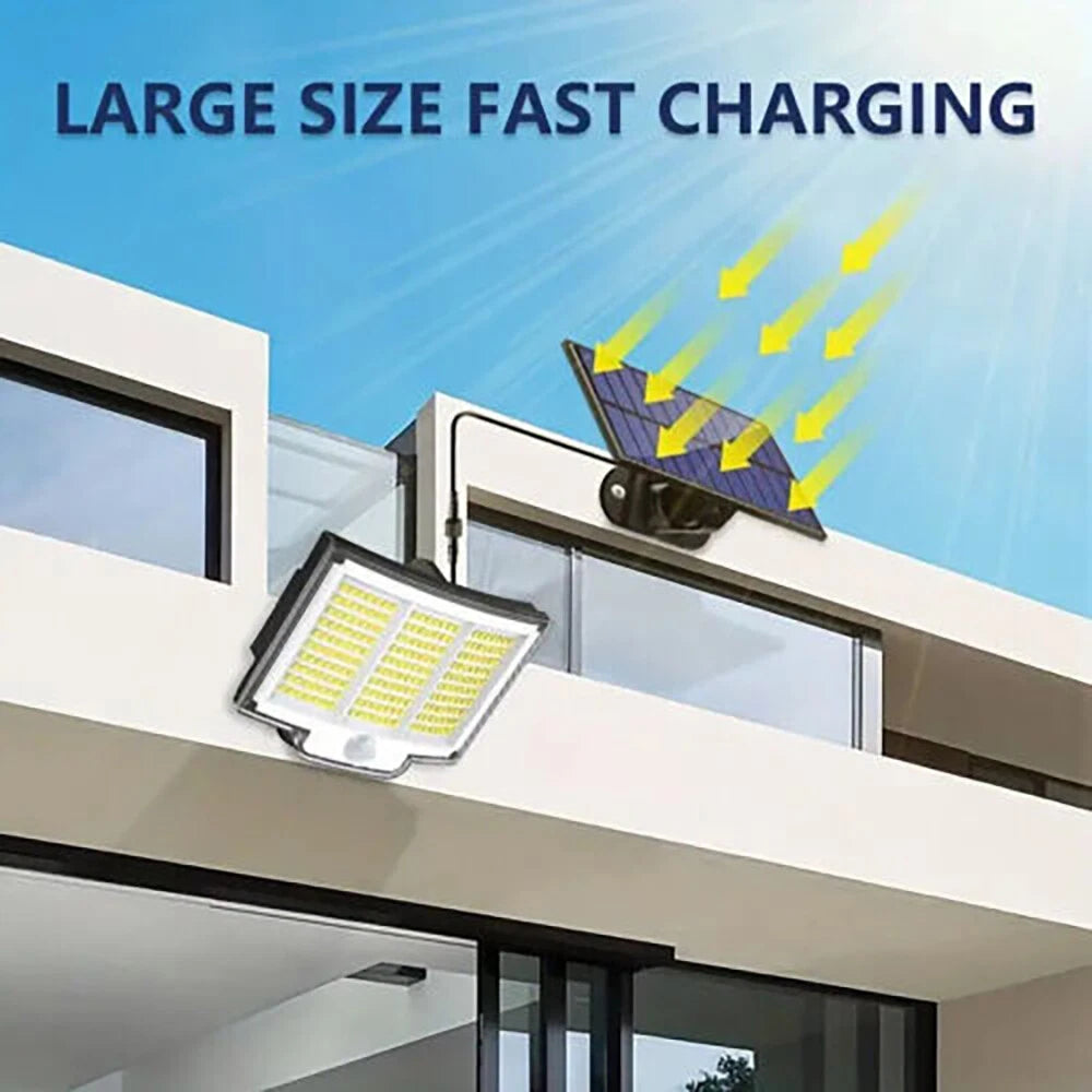 Illuminate your outdoor spaces effortlessly with this LED Solar Power PIR Motion Sensor Wall Light, designed for maximum brightness, durability, and energy efficiency. Featuring 210 ultra-bright LEDs, a separate solar panel with a 16.4ft cable, and a remote control, this light ensures powerful illumination exactly where you need it—without the hassle of wiring.