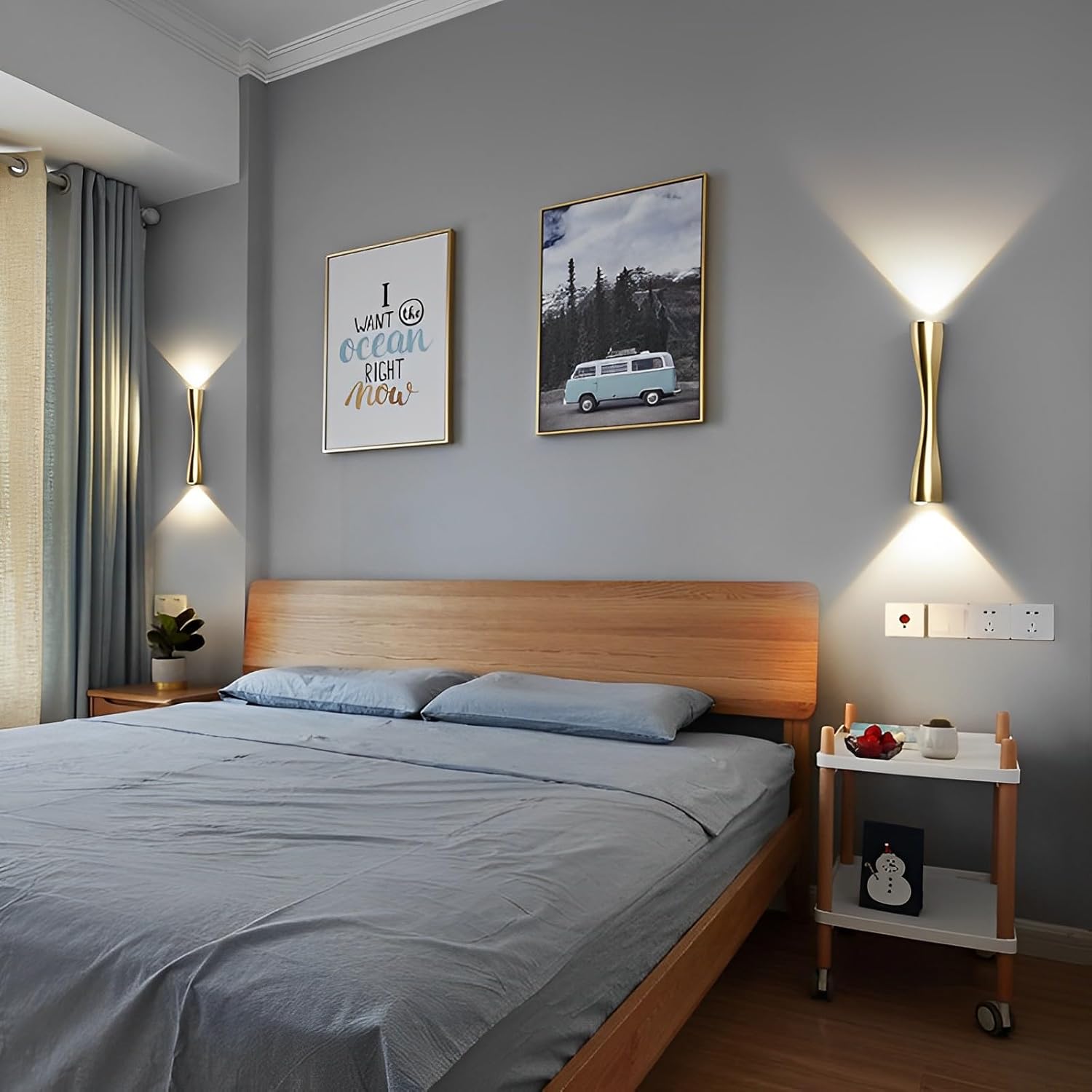 Our LED Up and Down Gold Wall Light provides modern, elegant illumination for bedrooms, living rooms, bathrooms, or beside areas. Crafted from high-temperature resistant aluminium with a polished gold finish, this wall sconce features a built-in 12W LED light source that emits a warm 3000K glow for a cozy and comfortable ambiance. The minimalist up and down design enhances indoor aesthetics while delivering soft, even lighting that protects the eyes and complements modern décor. Perfect as a reading lamp, ambient wall light, or decorative accent, it adds a touch of sophistication to any interior.