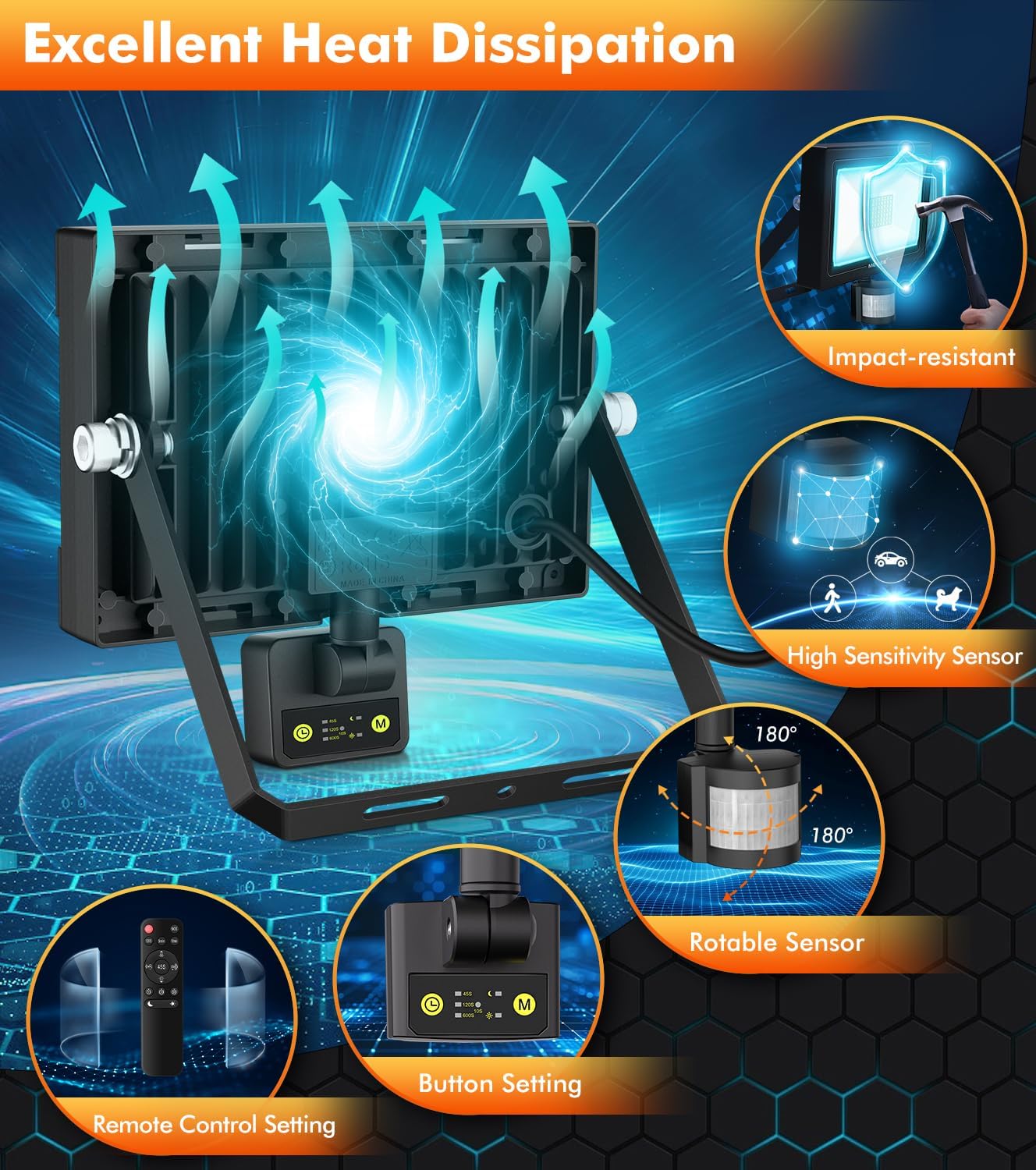 Upgrade your home safety with the MEIKEE 60W LED Security Light with Motion Sensor, delivering an ultra-bright 5640 lumens of daylight white illumination. Designed with advanced PIR motion detection up to 12m and a wide 180° sensor angle, this outdoor floodlight ensures maximum visibility and protection around your property. With dimmable brightness from 10% to 100% and multiple lighting modes, including 24-hour detection, night-only detection, constant light, and timer plus detection, it adapts to all your outdoor lighting needs.