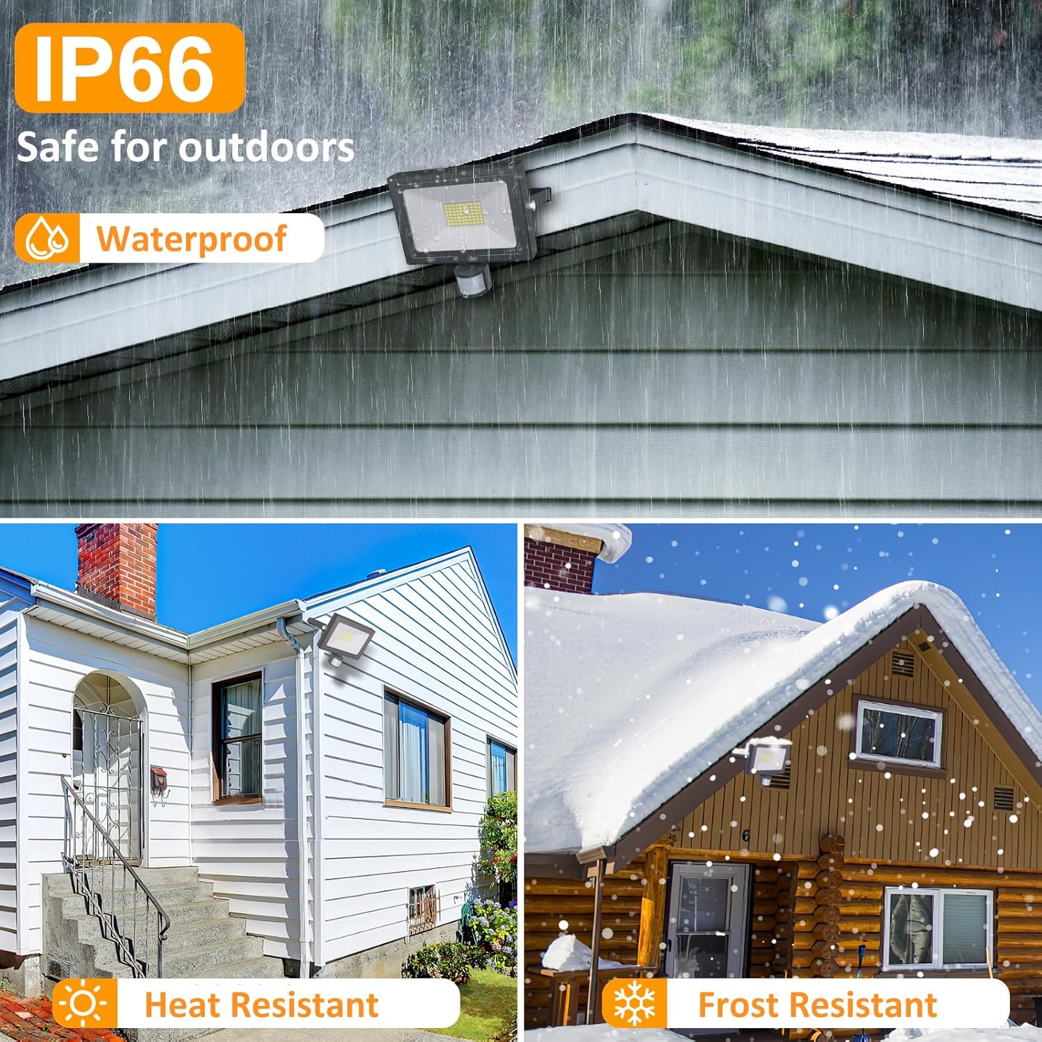 IP66 waterproof floodlight and IP65 waterproof sensor for all-weather use