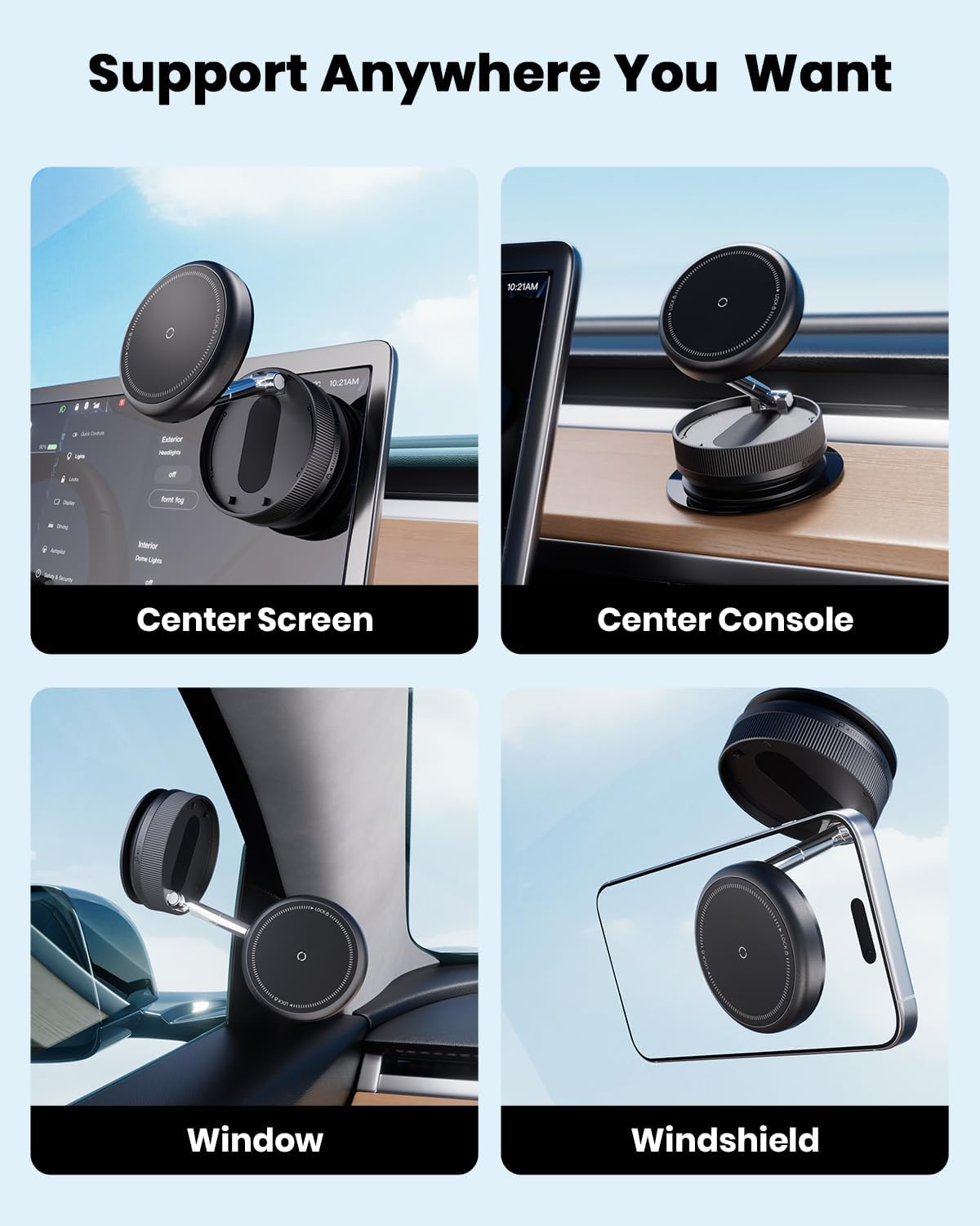 Our MiiKARE 2025 Upgraded Magnetic Phone Holder is designed to deliver a rock-solid hold with its powerful N55-grade magnets, providing 2400GF of pull force for an ultra-secure grip on your device. Featuring 360° rotation and 270° tilt adjustability, this car phone holder ensures complete viewing flexibility and hands-free convenience whether in your car, gym, kitchen, or office. Its vacuum suction cup mounts firmly to smooth surfaces and can be set up in just seconds without tools. Compact, foldable, and lightweight, it’s easy to carry anywhere, offering wide compatibility for iPhone MagSafe models and Android phones using the included metal ring.