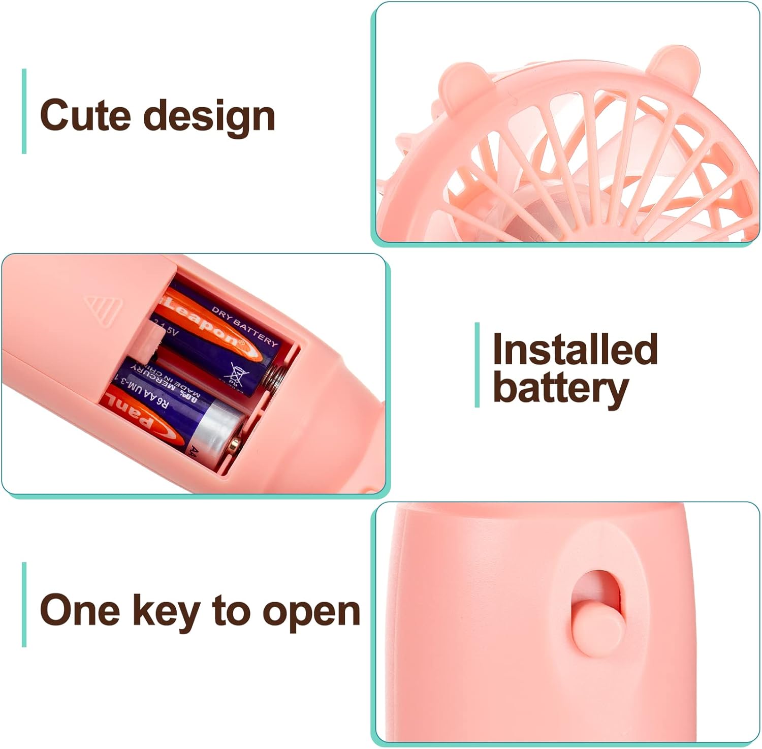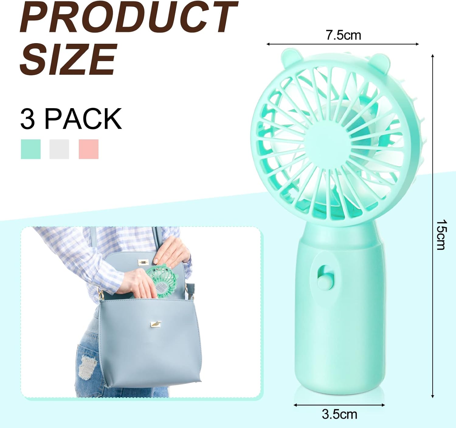 3 Mini Portable Fans – Includes pink, white, and green fan set