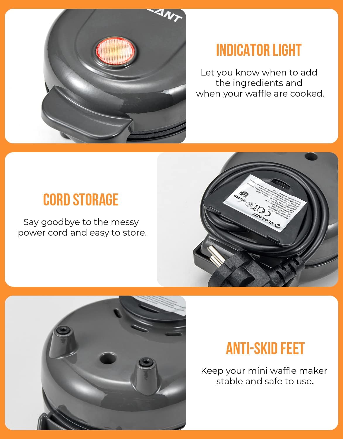 Quick and Even Cooking: 550W power heats waffles evenly for a crispy finish.