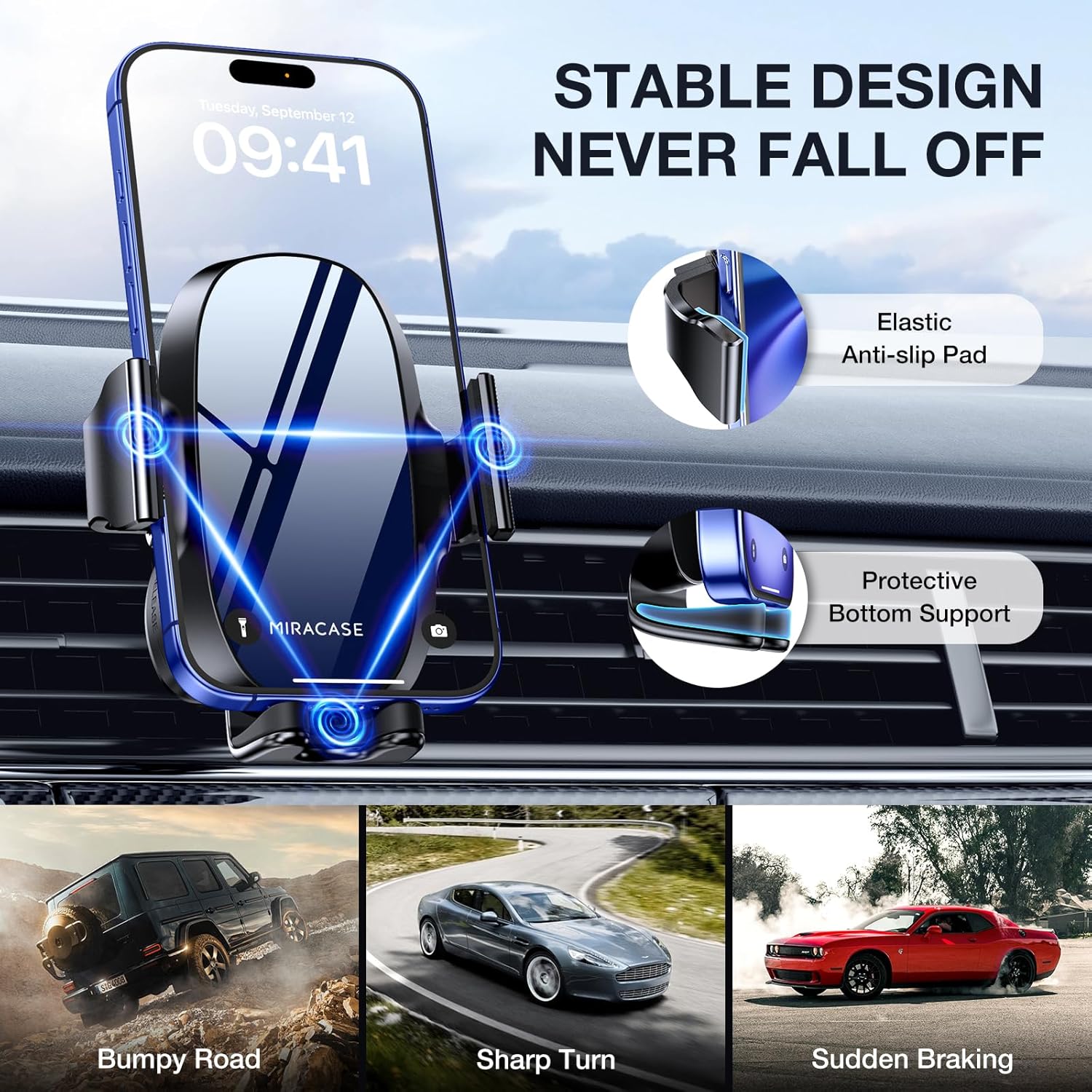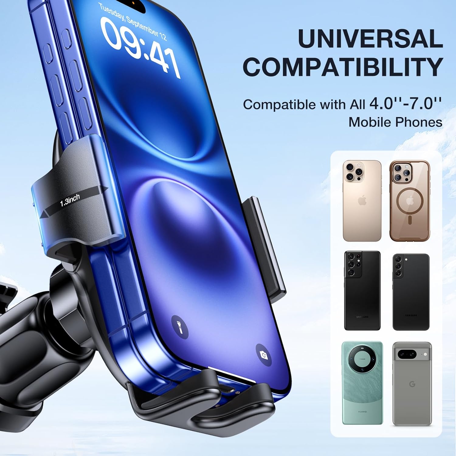Our Miracase 2nd Generation Car Phone Holder offers a superior and secure mounting solution for your smartphone. Designed with an upgraded metal clip hook and reinforced structure, it ensures unmatched stability even on bumpy roads. Compatible with most 4–7 inch smartphones, including iPhone, Samsung, Huawei, Google Pixel, and more, this holder provides effortless one-handed operation. Its 360° rotatable design lets you easily switch between portrait and landscape modes, ensuring a clear and comfortable viewing angle for safe driving.