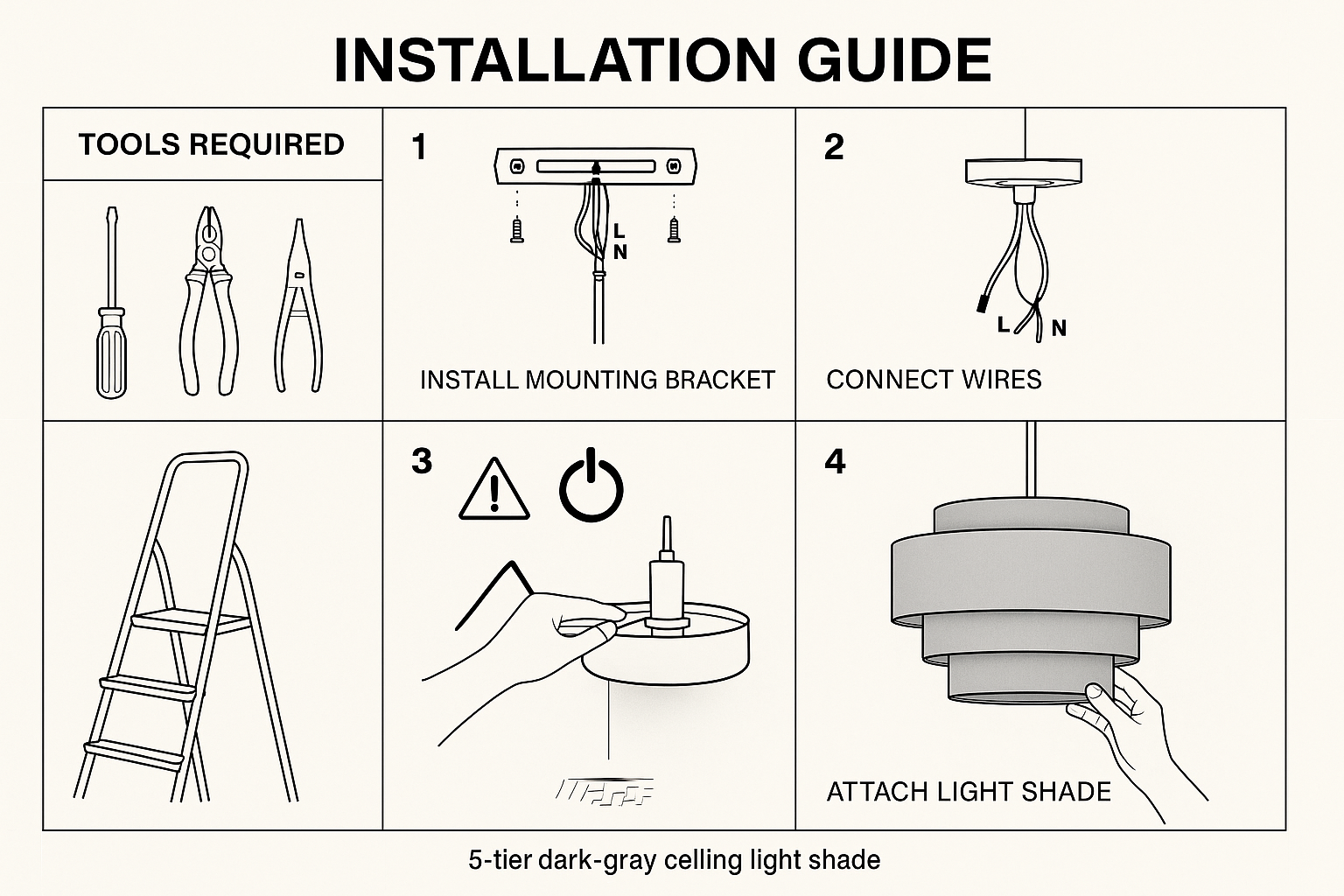 This ceiling shade is stunning! The 5-tier design adds a modern and classy touch to my living room. The dark grey color is perfect, and it diffuses the light beautifully. Installation was super simple, no electrician needed!
