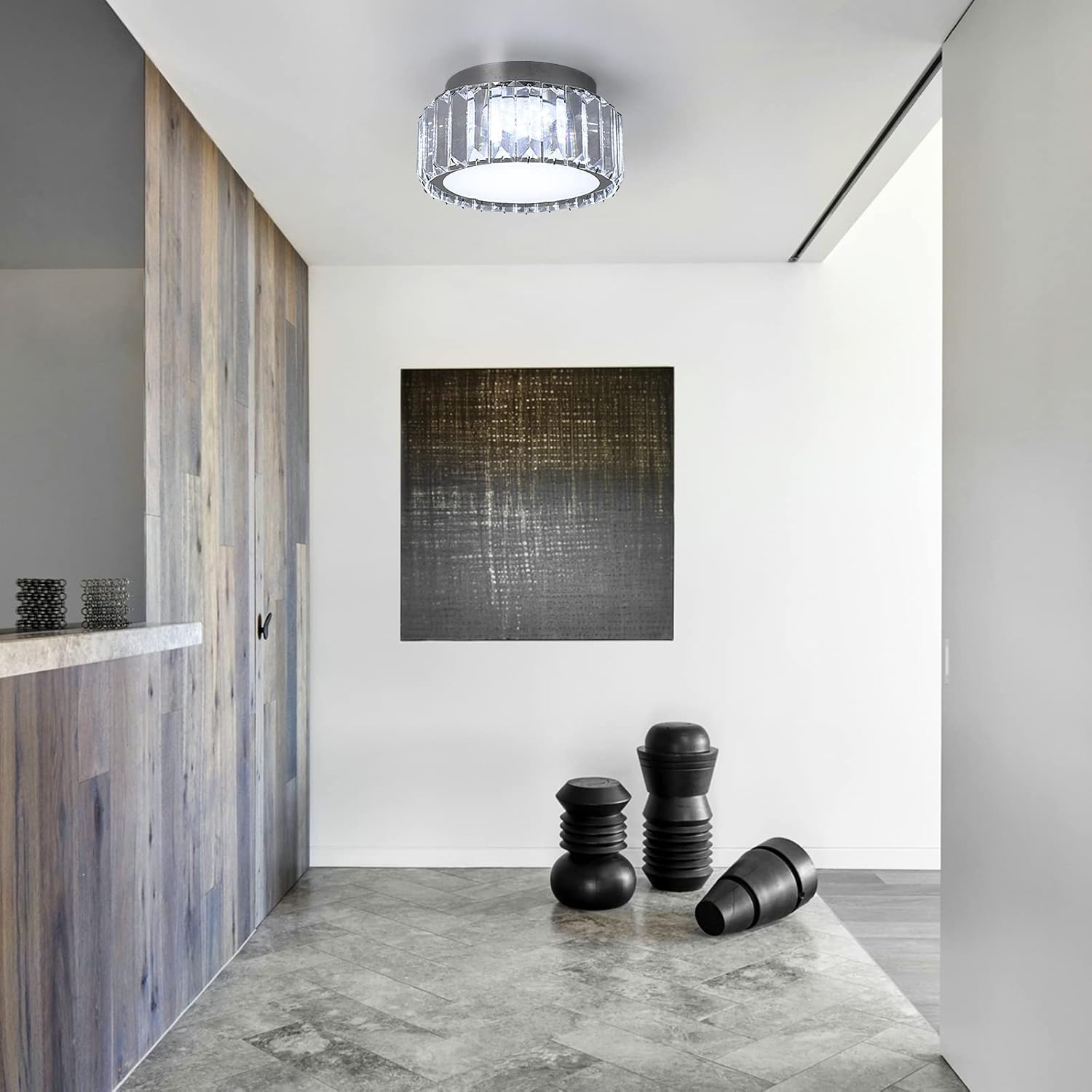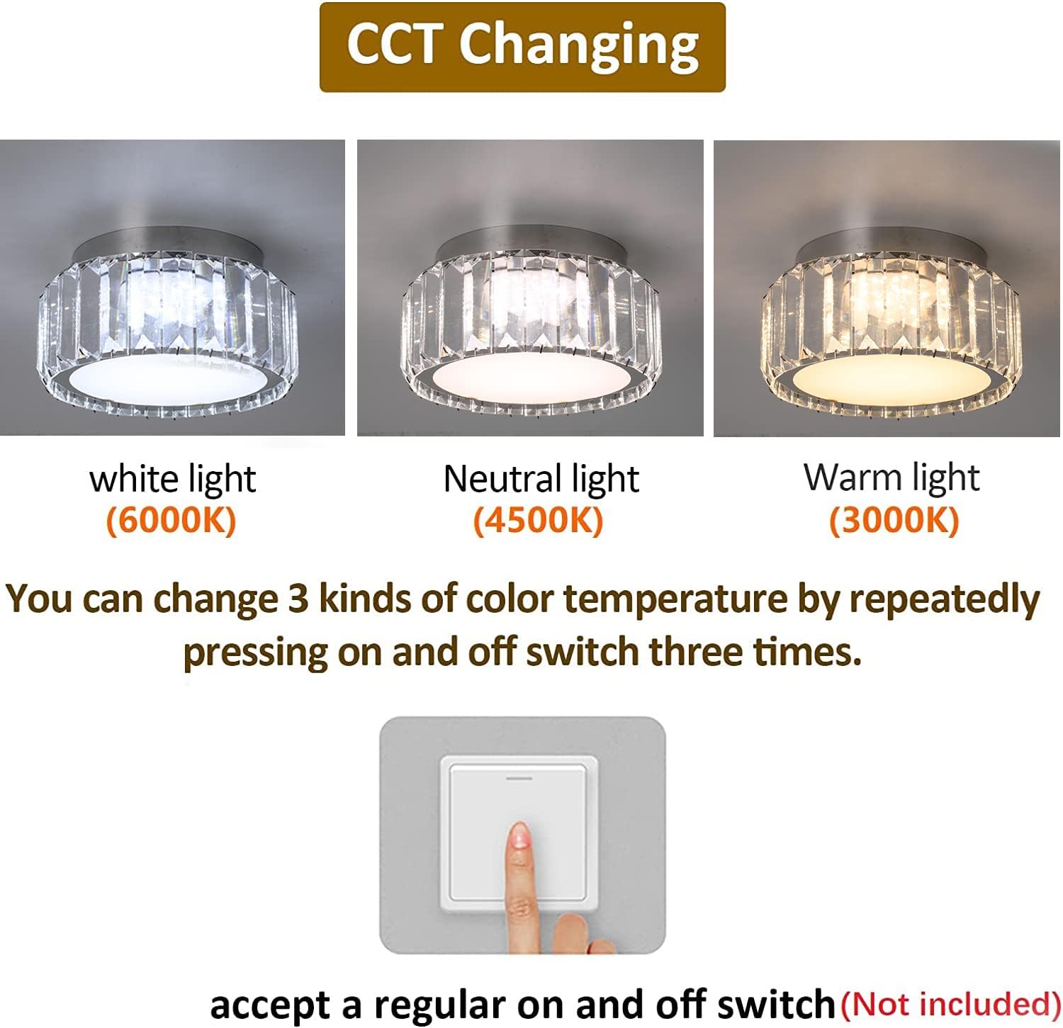 Enhance your interior with this modern crystal ceiling light, designed with embedded LED chips and a sparkling crystal mirror glass shade that beautifully reflects light to create a luxurious ambiance. Featuring three selectable color temperatures (warm 3000K, natural 4000K, and white 6500K), this flush mount fixture adapts to your mood and décor. Crafted from premium stainless steel and crystal, it delivers elegance, durability, and energy efficiency in one compact design. Easy to install with all mounting accessories included, this LED lighting fixture is ideal for living rooms, bedrooms, kitchens, dining rooms, hallways, entryways, and more.