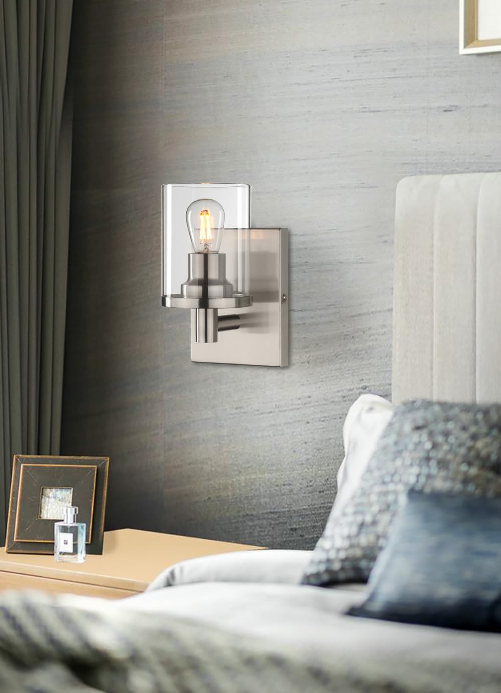 Our modern glass cylinder wall sconce is designed to provide stylish and functional indoor lighting for kitchens, bedrooms, living rooms, restaurants, and hospitality spaces. Crafted from durable metal with a handblown clear glass cylindrical shade, this wall light can be installed facing upward or downward to suit different lighting needs. Compatible with E27 LED or incandescent bulbs, it supports dimmer use when paired with a dimmable bulb, making it ideal for ambient or task lighting around kitchen islands, bars, and bathroom mirrors.