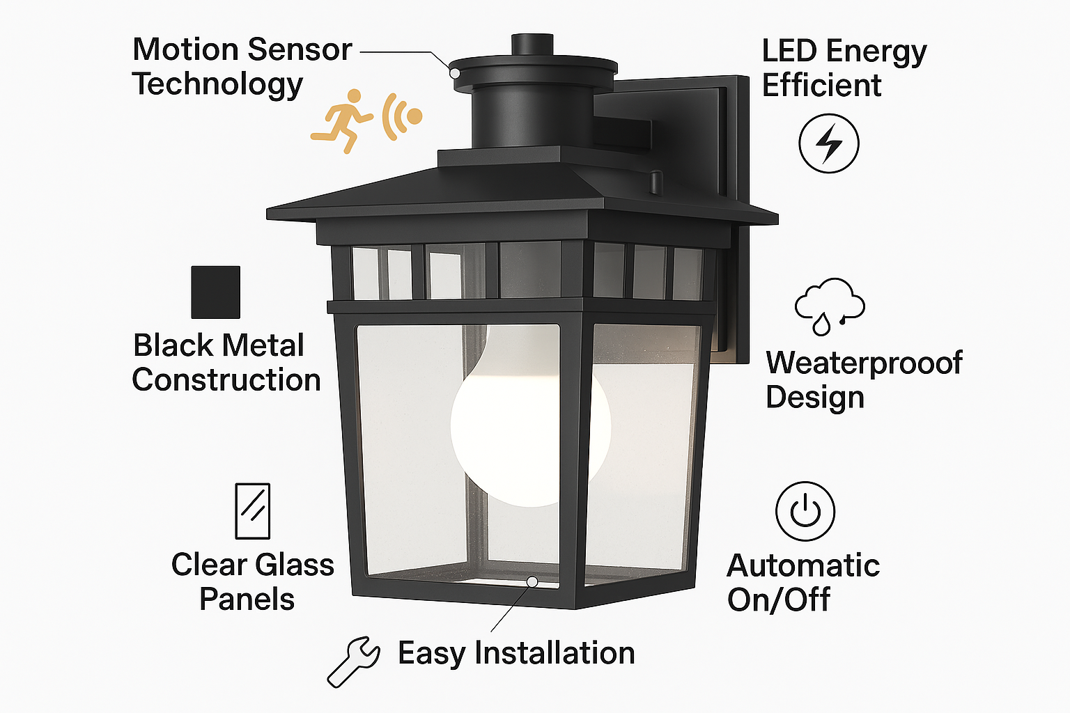 This outdoor light is just what I needed! The motion sensor works great, and I love the flexibility to adjust the settings. It’s durable, even in tough weather, and looks stylish by the door. Easy to install and really does the job.