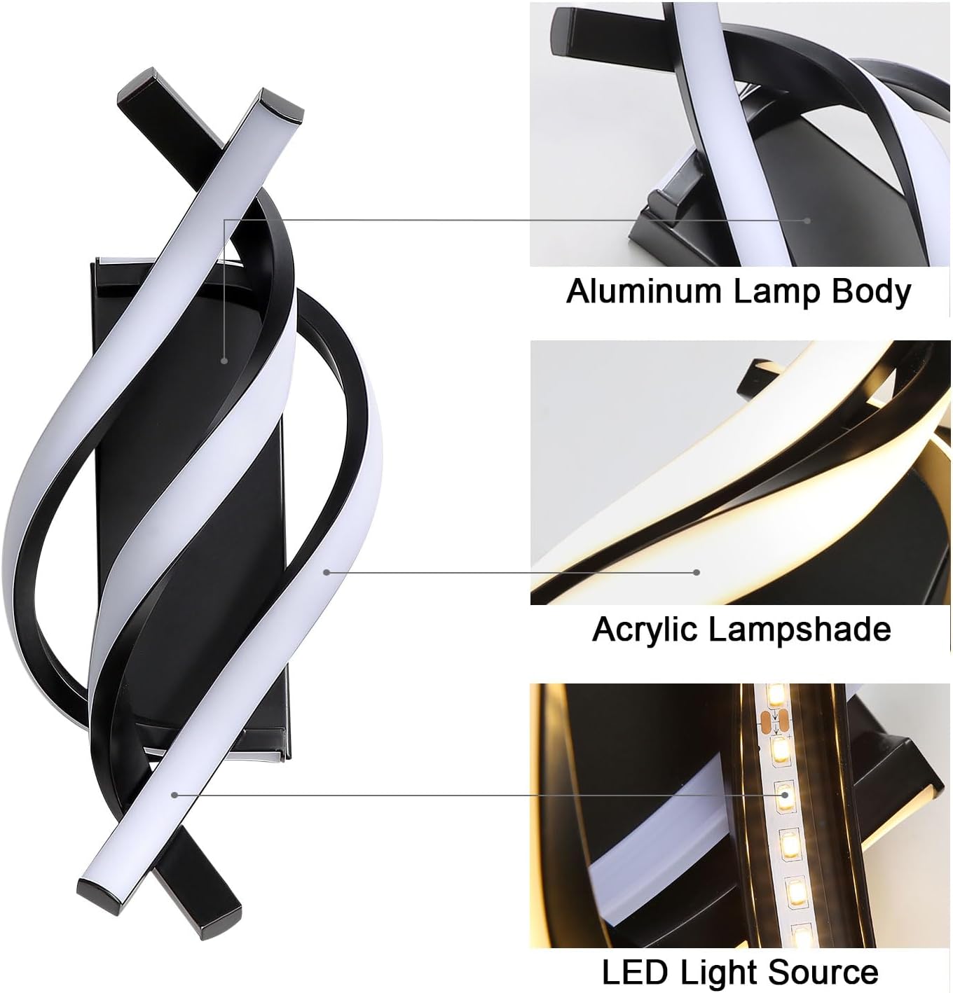 Our modern LED wall light delivers stylish and efficient indoor illumination for bedrooms, living rooms, hallways, and staircases, featuring a distinctive black spiral aluminium design that blends art deco and contemporary aesthetics. Powered by an integrated 22W LED system with 3000K warm white light and 1320 lumens output, this hardwired wall lamp provides bright, flicker-free, and energy-efficient lighting, while its durable aluminium body and acrylic shade ensure long-lasting performance and elegant visual appeal.