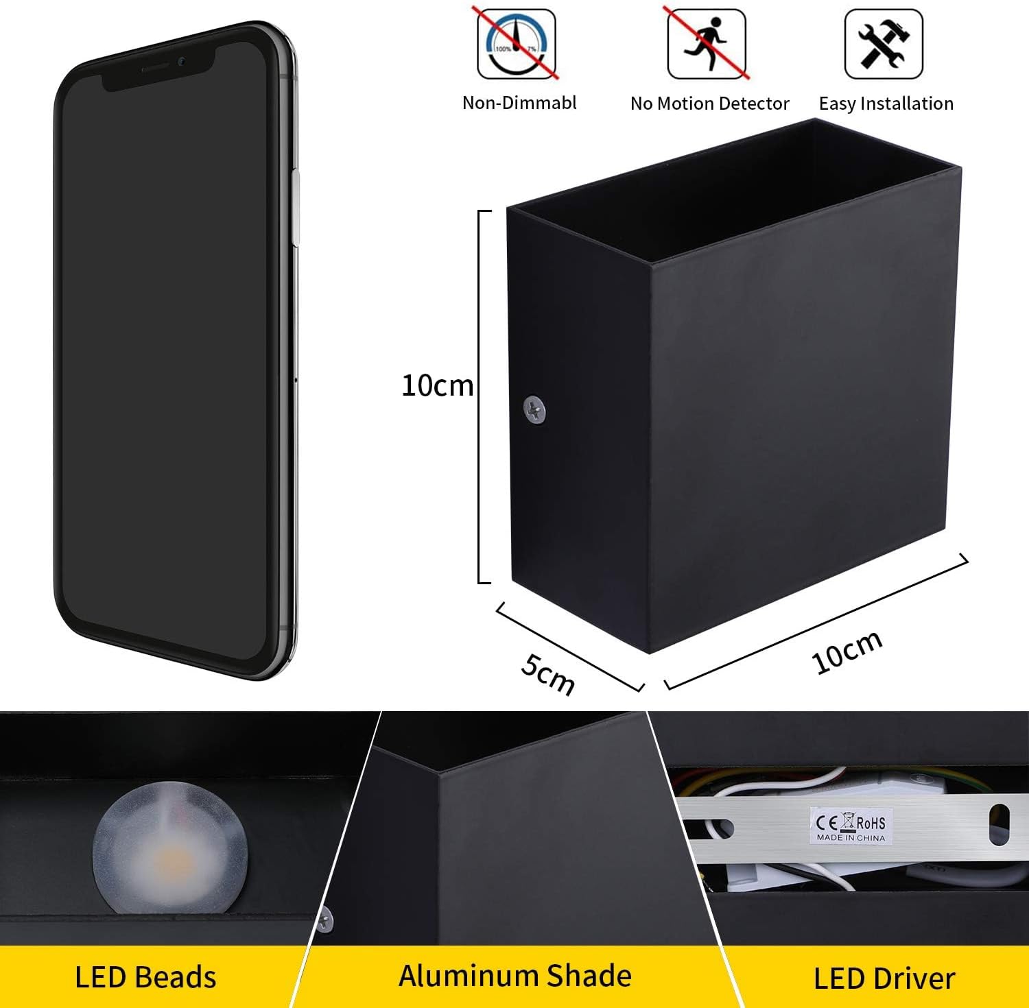 【Compact & Functional Size】 – Dimensions: L10 x W10 x H5 cm; Power: 6W; Voltage: AC85–240V; Lumen: 1200lm; Color Temp: 3000K; Color: Black. Ideal for small or medium walls.