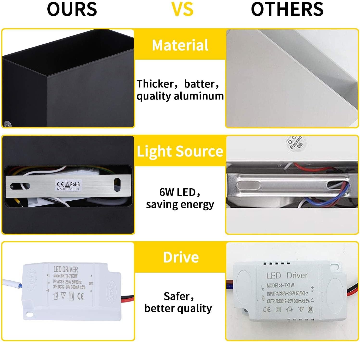 【Modern Wall Light Design】 – Sleek square-shaped aluminum frame with elegant black finish; resistant to oxidation and fading. Stylish, durable, and suitable for any interior décor.