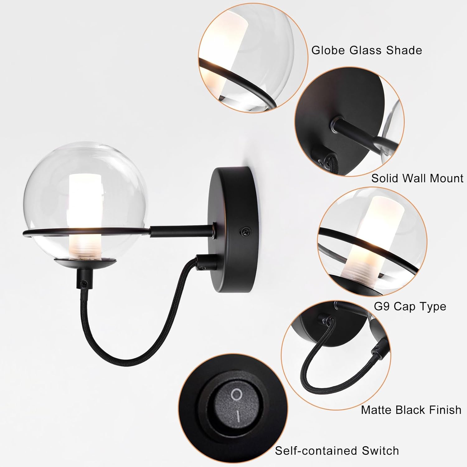 - Modern wall sconce design with globe glass shade