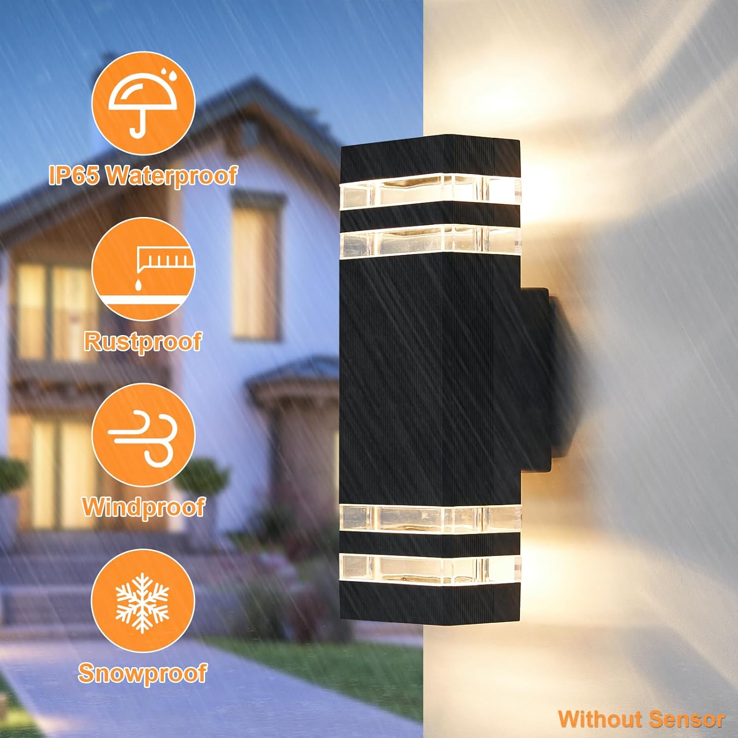Enhance your home’s exterior with these Modern Outdoor Wall Lights Mains Powered, designed for both style and durability. Featuring a sleek black square design, these IP65-rated Up Down LED Lights provide stunning illumination for porches, patios, garages, and doorways. The exterior wall lamp ensures reliable performance in all weather conditions and adds a modern touch to your home.