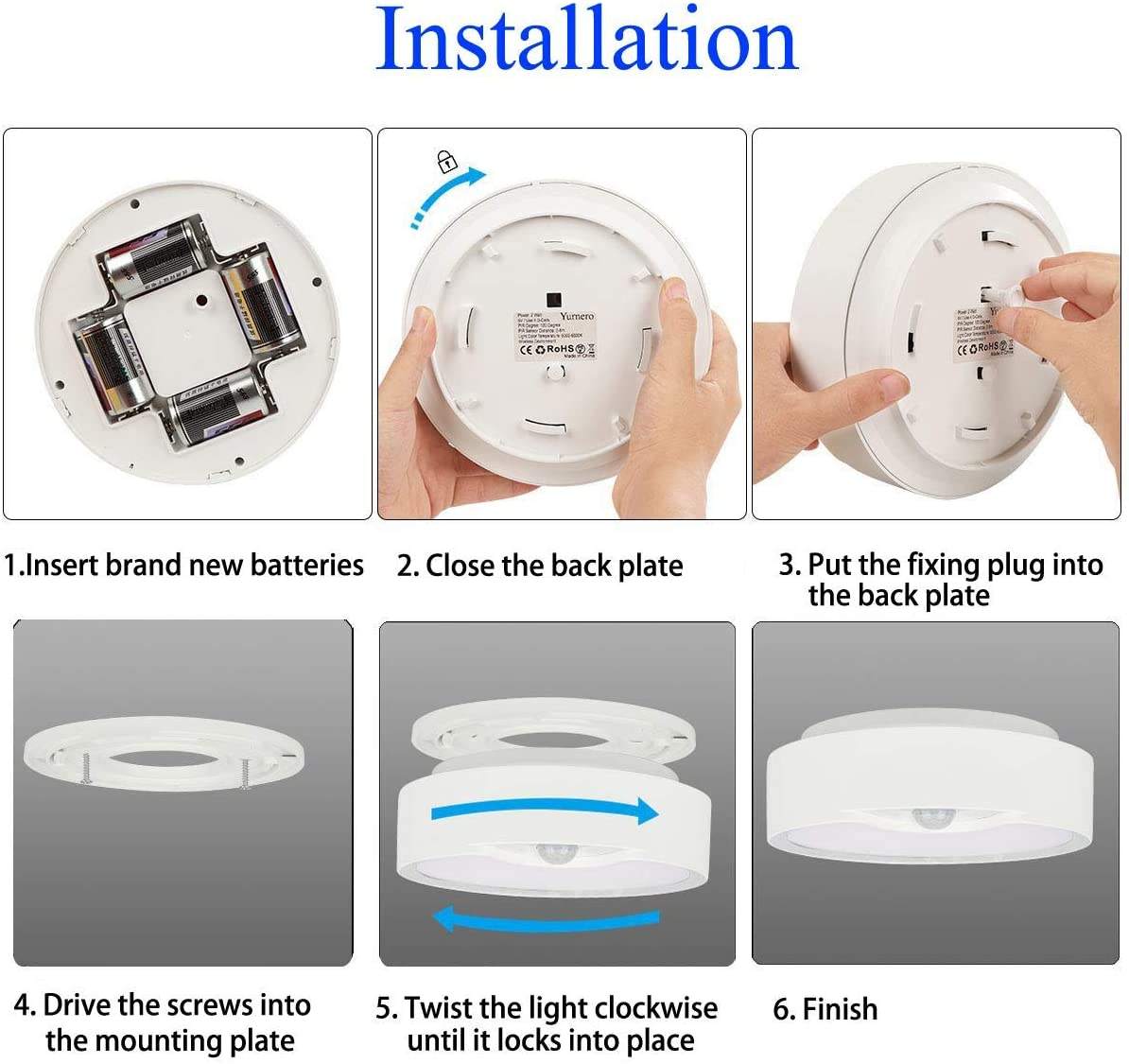This battery-operated ceiling light is perfect for our hallway; it turns on instantly when I walk past. The 400LM output is bright enough without being harsh, and the sleek design blends nicely with the ceiling. Super convenient with no wiring needed.