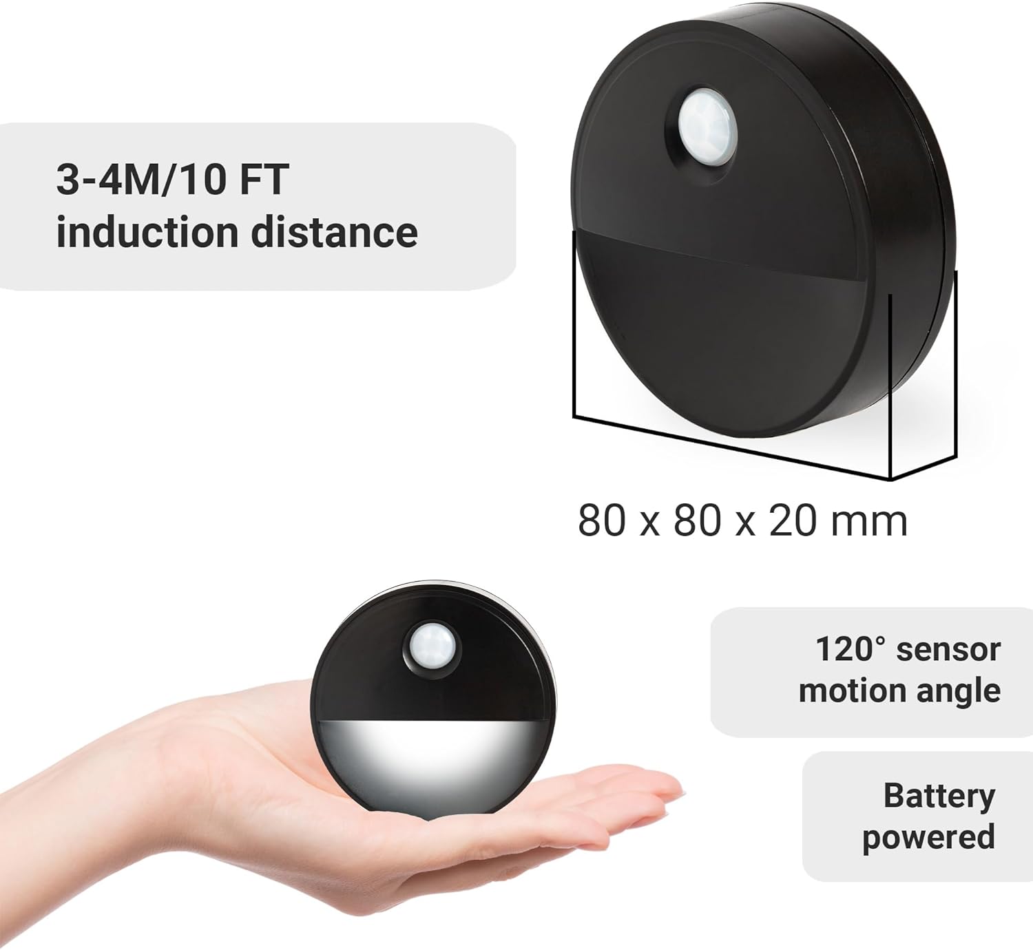 Crafted with a compact, modern design and finished in matte black with cold white LED light, these lights blend seamlessly into any décor. The built-in 3M adhesive pad and magnetic backing allow easy installation in stairways, bathrooms, cupboards, hallways, or bedrooms without drilling or wiring.