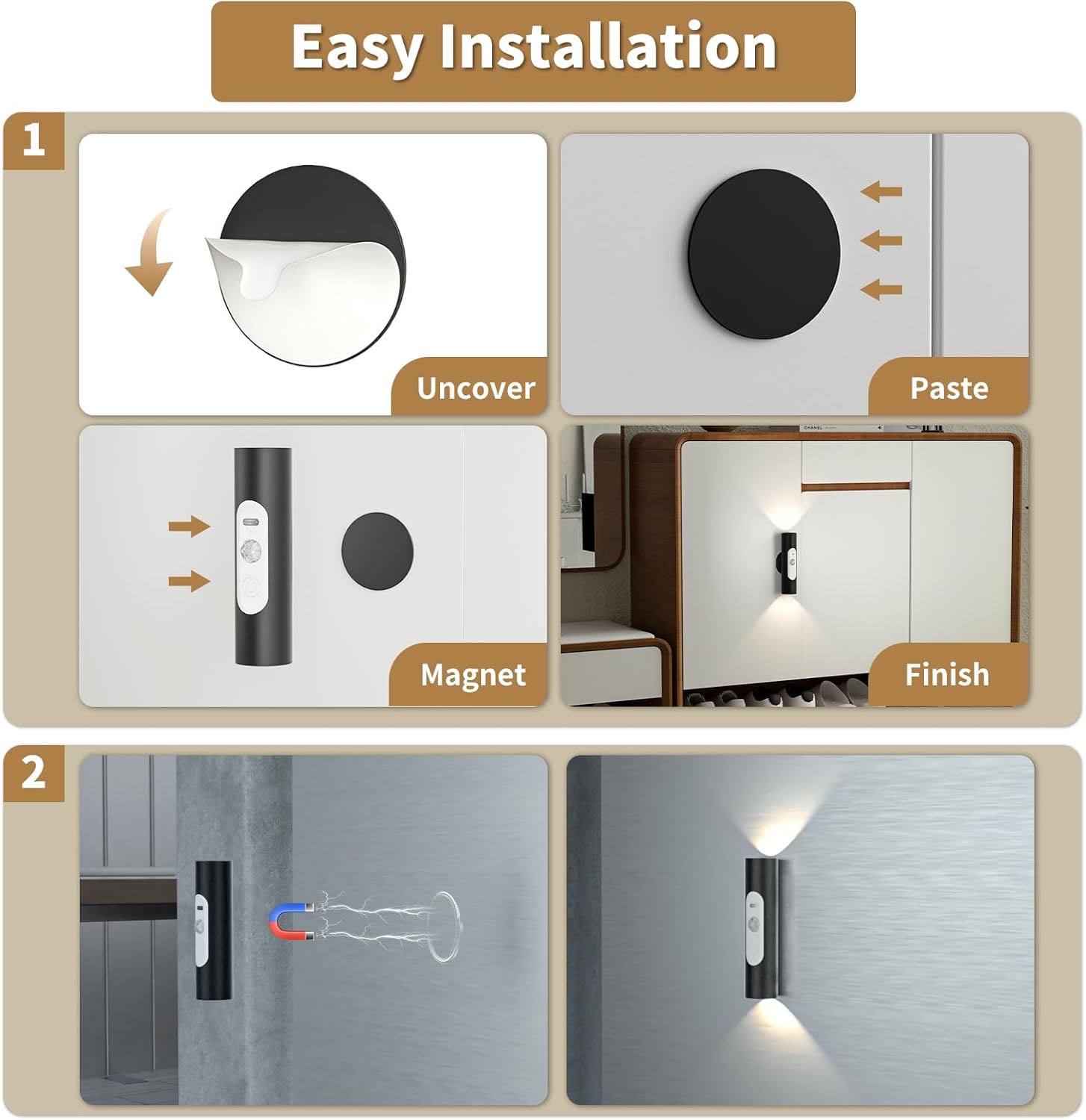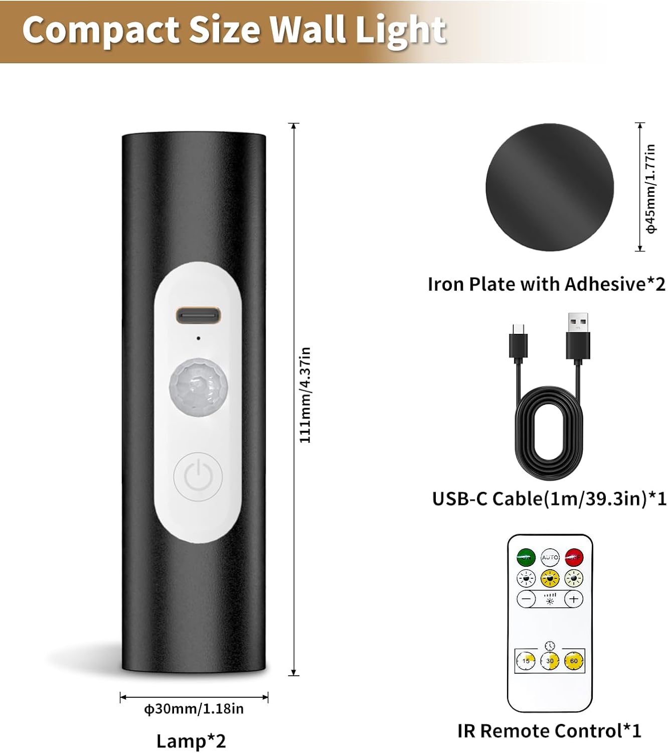 Our motion sensor rechargeable wall lights are designed to deliver flexible, wireless indoor lighting for hallways, stairs, bedrooms, and living areas, combining smart motion detection with remote control convenience. These battery operated wall sconces automatically illuminate when movement is detected within 4 metres and switch off after 30 seconds, enhancing nighttime safety while conserving power. Featuring a built-in 2000mAh rechargeable battery, adjustable brightness, and three selectable colour temperatures, they provide reliable performance, soft glare-free illumination, and versatile installation without wiring.