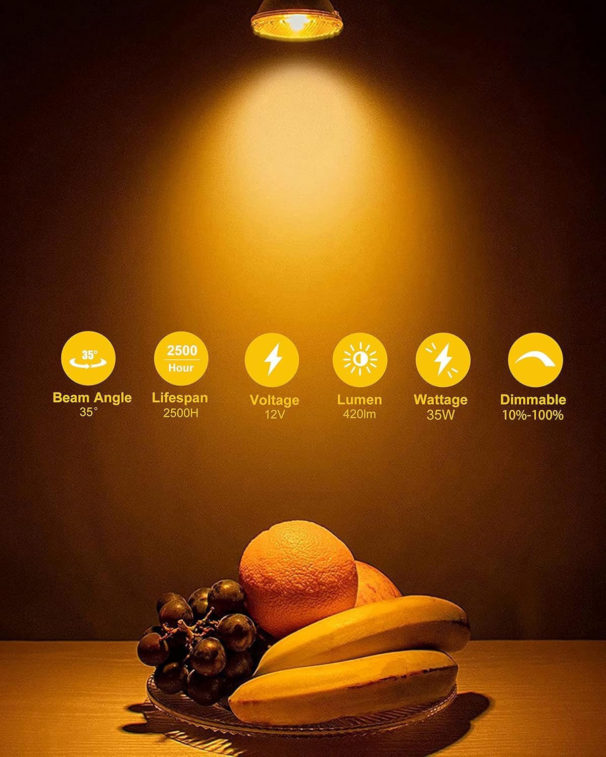 - 35° beam angle for focused lighting