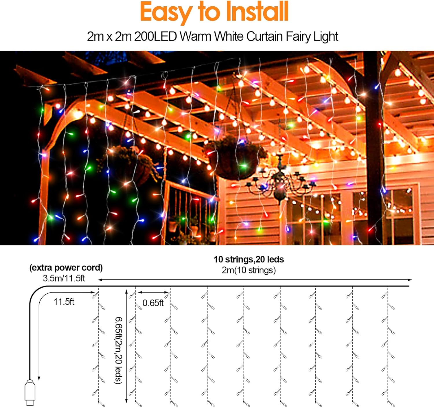 Product Name | Multicoloured 200LED Curtain Fairy Lights |