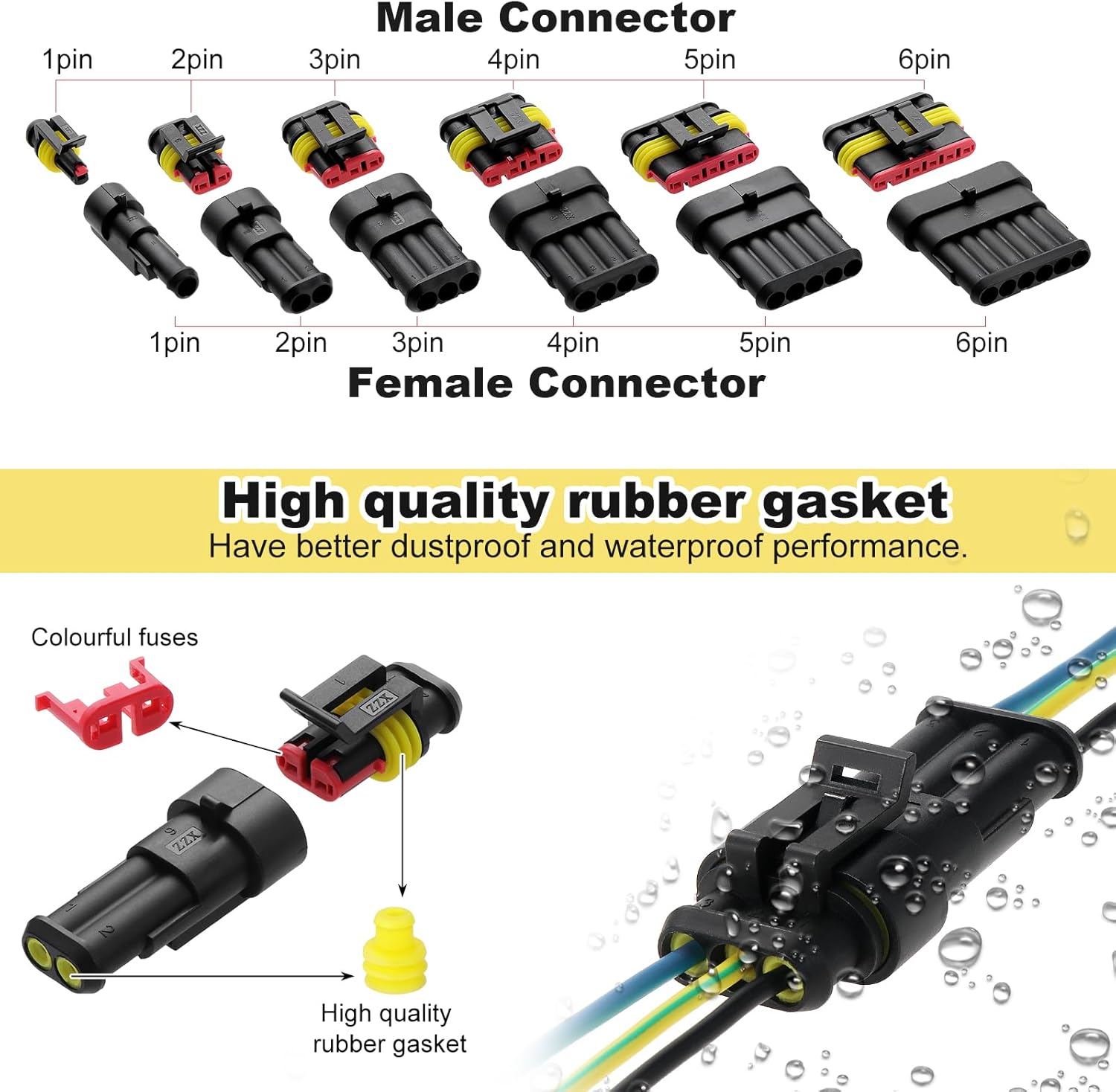 Our 708PCS waterproof car electrical connector plug kit is designed to provide secure, reliable, and weather-resistant electrical connections for automotive and marine applications. Manufactured using high-quality materials with strong chemical stability and oxidation resistance, this comprehensive kit supports multiple pin configurations and includes a ratchet crimping tool for precise installation. With sealed connectors and rubber gaskets for dust and water protection, it is suitable for professional and DIY wiring tasks across a wide range of vehicles.