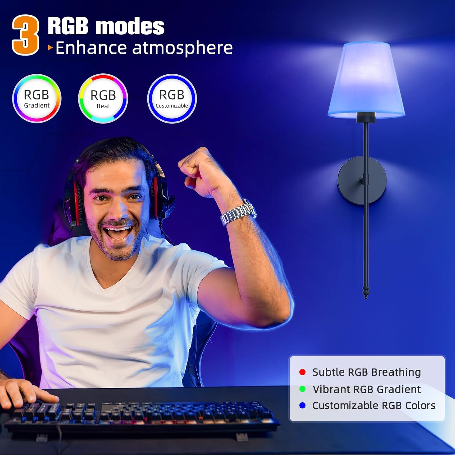Our NIORSUN 19.9 inch battery operated wall light combines **wireless convenience**, **rechargeable functionality**, and **modern design** to enhance any indoor space. Featuring two 5200mAh E26 rechargeable LED bulbs, this wall light provides up to 25 hours of maximum brightness or 72 hours at low brightness on a full charge. With adjustable color temperatures from 3000K to 6500K, five brightness levels, and six RGB colors, it allows complete customization to suit your mood or activity. The included remote enables effortless control of brightness, colors, and timer settings, while its detachable, easy-to-install design fits seamlessly into bedrooms, hallways, living rooms, kitchens, or entryways. Combining energy efficiency, style, and functionality, this rechargeable wall sconce is a versatile lighting solution for modern interiors.