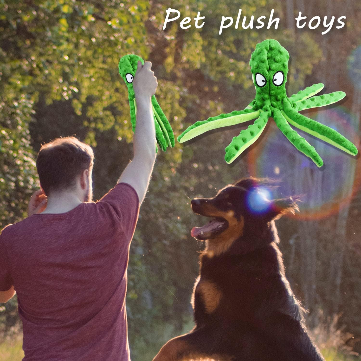 Our Octopus Dog Chew Toy is designed to provide safe, interactive, and engaging play for small and medium dogs, offering a soft plush surface made from crystal super-soft composite sandwich mesh that feels smooth while remaining gentle on your pet’s teeth and gums. With a no-stuffing structure for safer chewing, a built-in squeaker in the head, and crinkle paper inside all eight legs, this lightweight toy encourages fetching, biting, and sensory play both indoors and outdoors, making it a fun gift option for birthdays or training sessions.