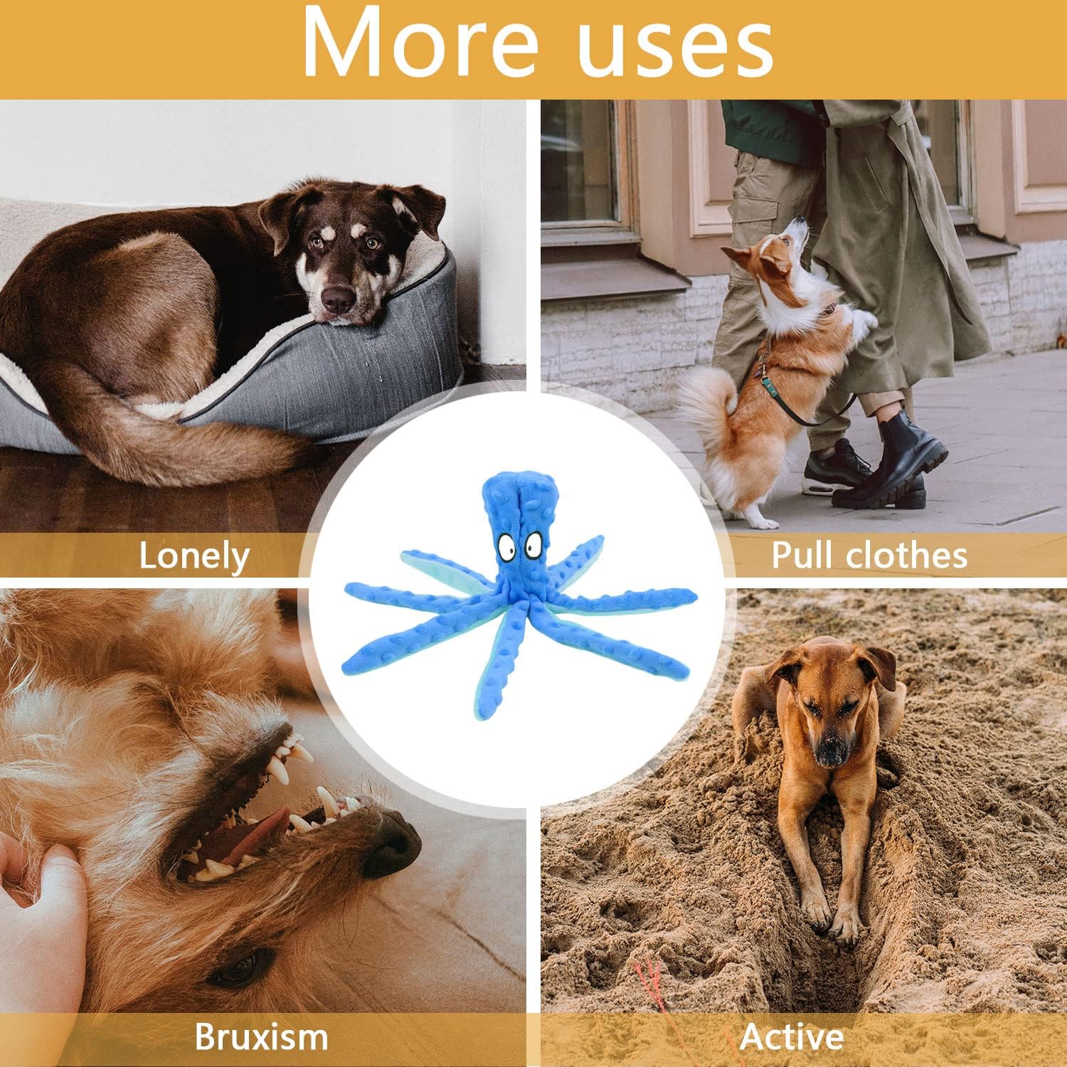 Our Octopus plush squeaky dog toy is designed to provide enjoyable interactive play for small and medium dogs, offering a soft, safe, and engaging experience with its high-quality plush material, stuffing-free design, squeaker in the head, and crinkle paper in the legs to keep pets entertained during chewing, training, or fetch sessions.
