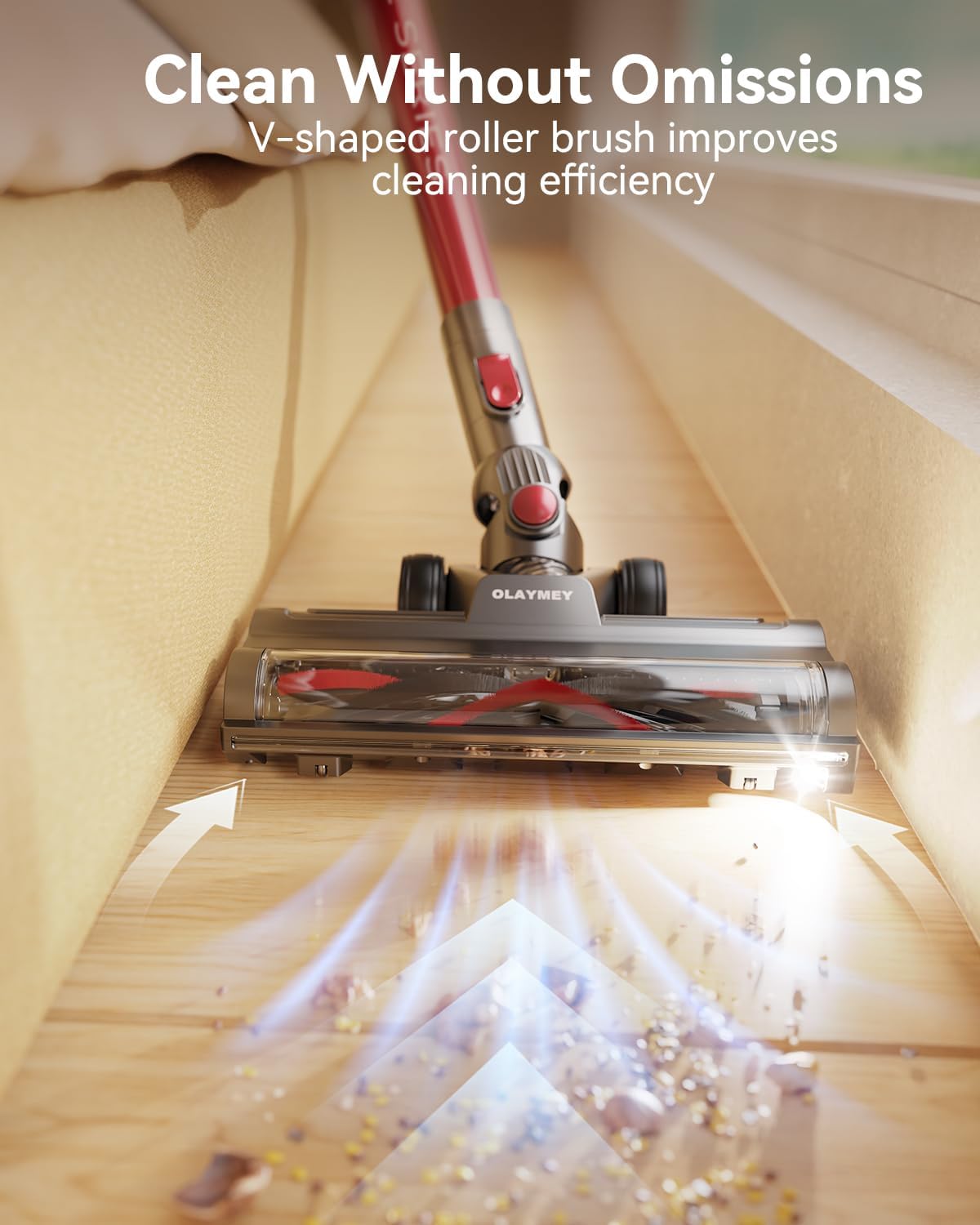 The OLAYMEY Cordless Vacuum Cleaner 7-in-1 delivers 45KPA powerful suction and up to 50 minutes runtime for deep cleaning across carpets, hardwood floors, and pet hair. This lightweight cordless vacuum offers advanced filtration and a self-standing design, making it ideal for whole-home cleaning. Whether tackling dust on hardwood floors or pet hair on carpets, the OLAYMEY cordless vacuum cleaner ensures efficient, quiet, and convenient cleaning for every surface.