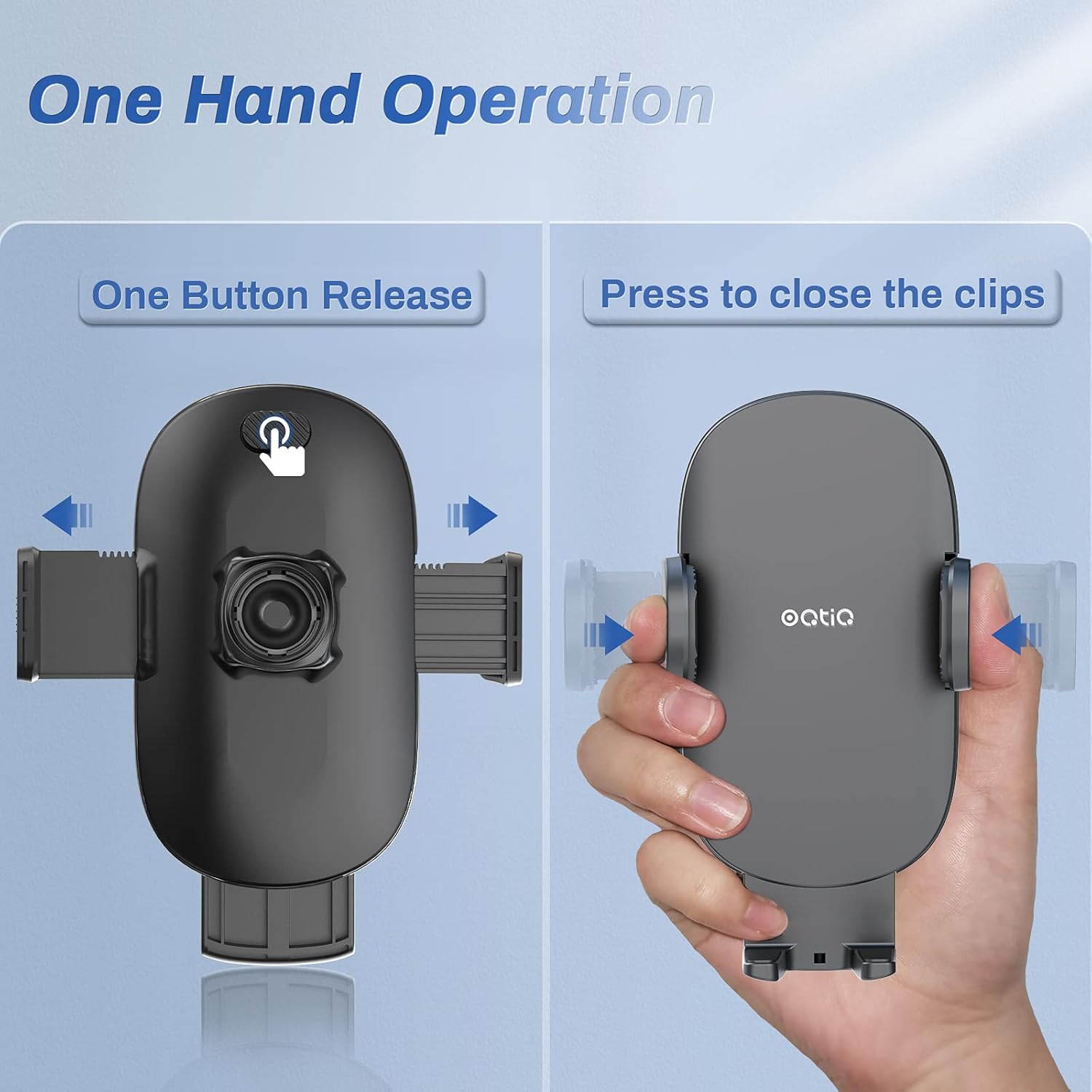 Our OQTIQ 13-inch Gooseneck Car Phone Mount provides a flexible and secure way to hold your smartphone on the windshield or dashboard while driving. Its long 13-inch gooseneck allows easy adjustment for optimal viewing without blocking your dashboard controls, while the enhanced suction cup with an anti-shake stabilizer ensures a firm, vibration-free hold on rough roads. The one-button release system allows quick mounting and removal, and the universal clamp fits phones up to 6.9 inches. This durable, adjustable holder ensures safe, hands-free use for all your driving needs.