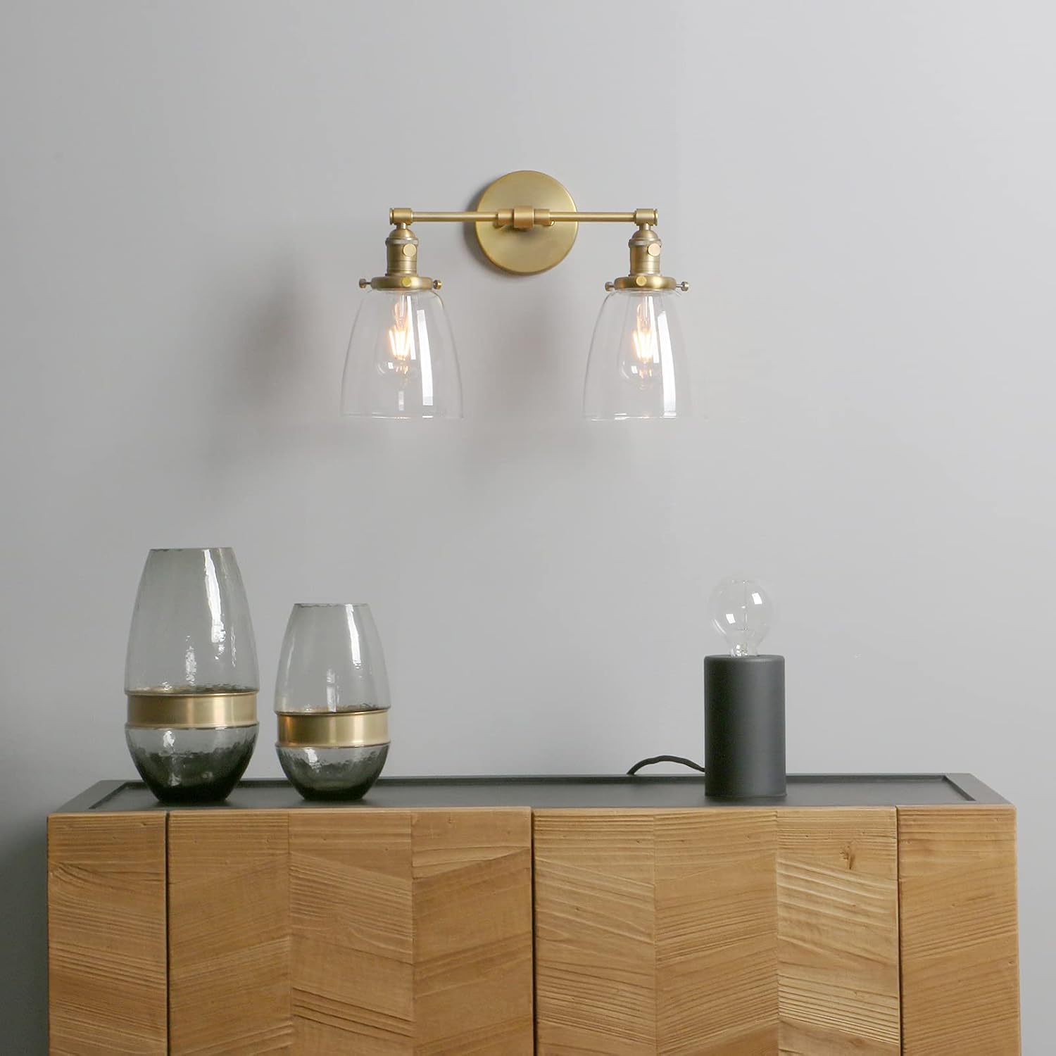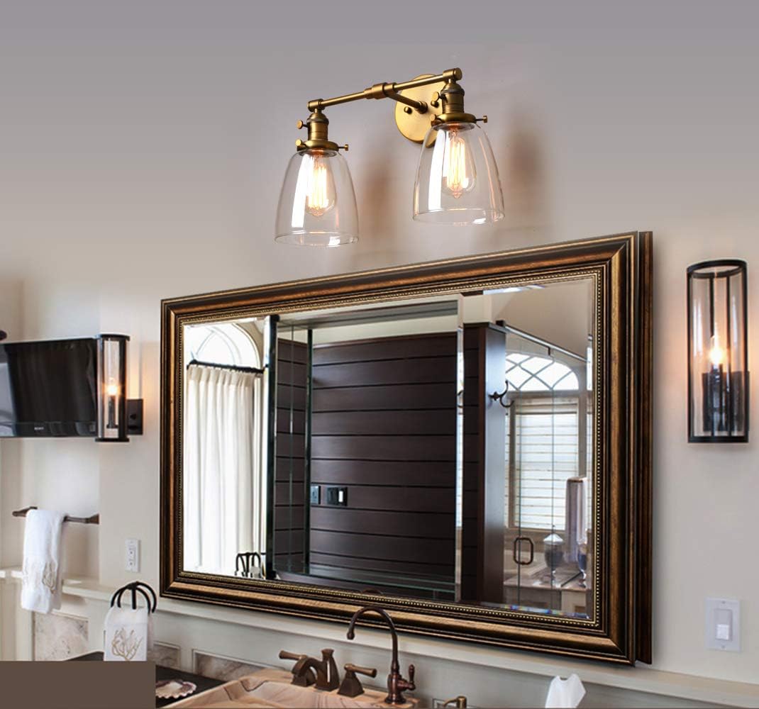 Our Phansthy 2-Light Industrial Wall Sconce features an elegant oval glass shade and antique finish, combining vintage style with modern functionality. Designed for indoor spaces, this wall lamp provides bright, clear illumination compatible with E27 incandescent, LED, halogen, or CFL bulbs up to 40W. The built-in twist switch allows direct control of the light, or it can be operated via a wall switch if preferred. Compact yet stylish, this wall light is ideal for bedrooms, hallways, bathrooms, kitchens, or living areas, offering durable metal construction and timeless industrial design to enhance any interior.