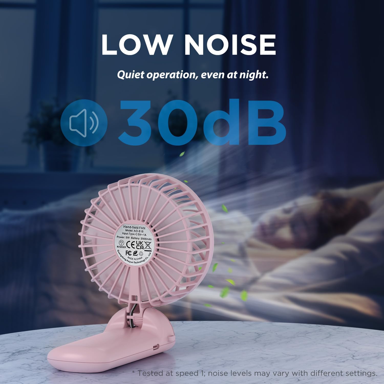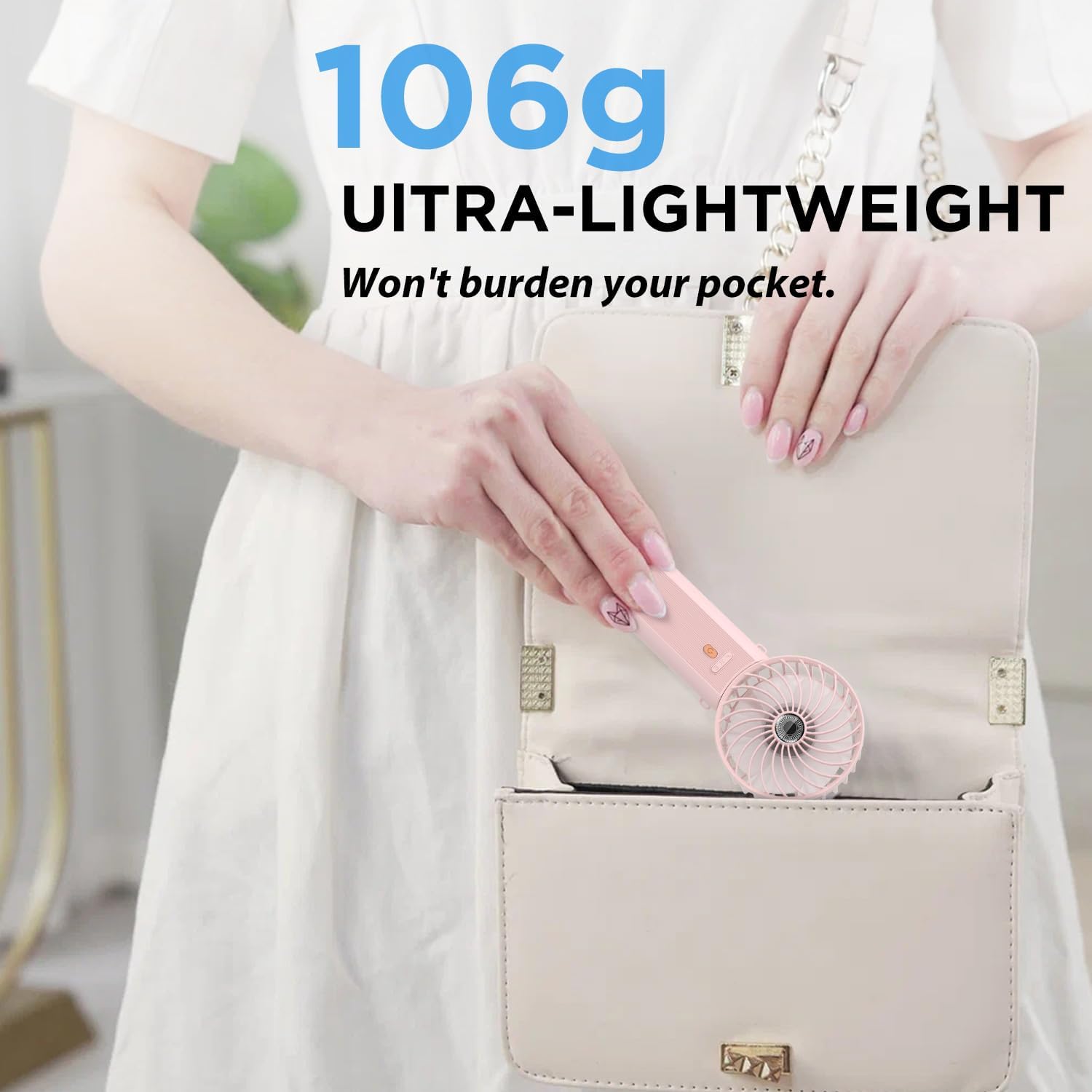 Our mini handheld neck fan with 16-hour cooling, 4 speeds, foldable pocket design, ultra-lightweight build, USB rechargeable battery, and low-noise brushless motor delivers efficient personal airflow for handheld, desk, or hands-free neck use in home office and outdoor environments. Engineered for portability at only 106g, it provides consistent multi-speed cooling while maintaining quiet 30dB operation, making it suitable for travel, commuting, and night-time use without disturbance.