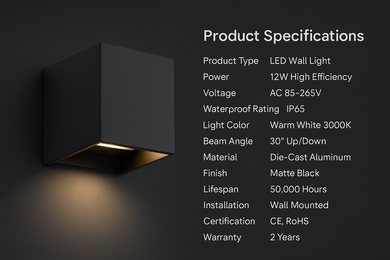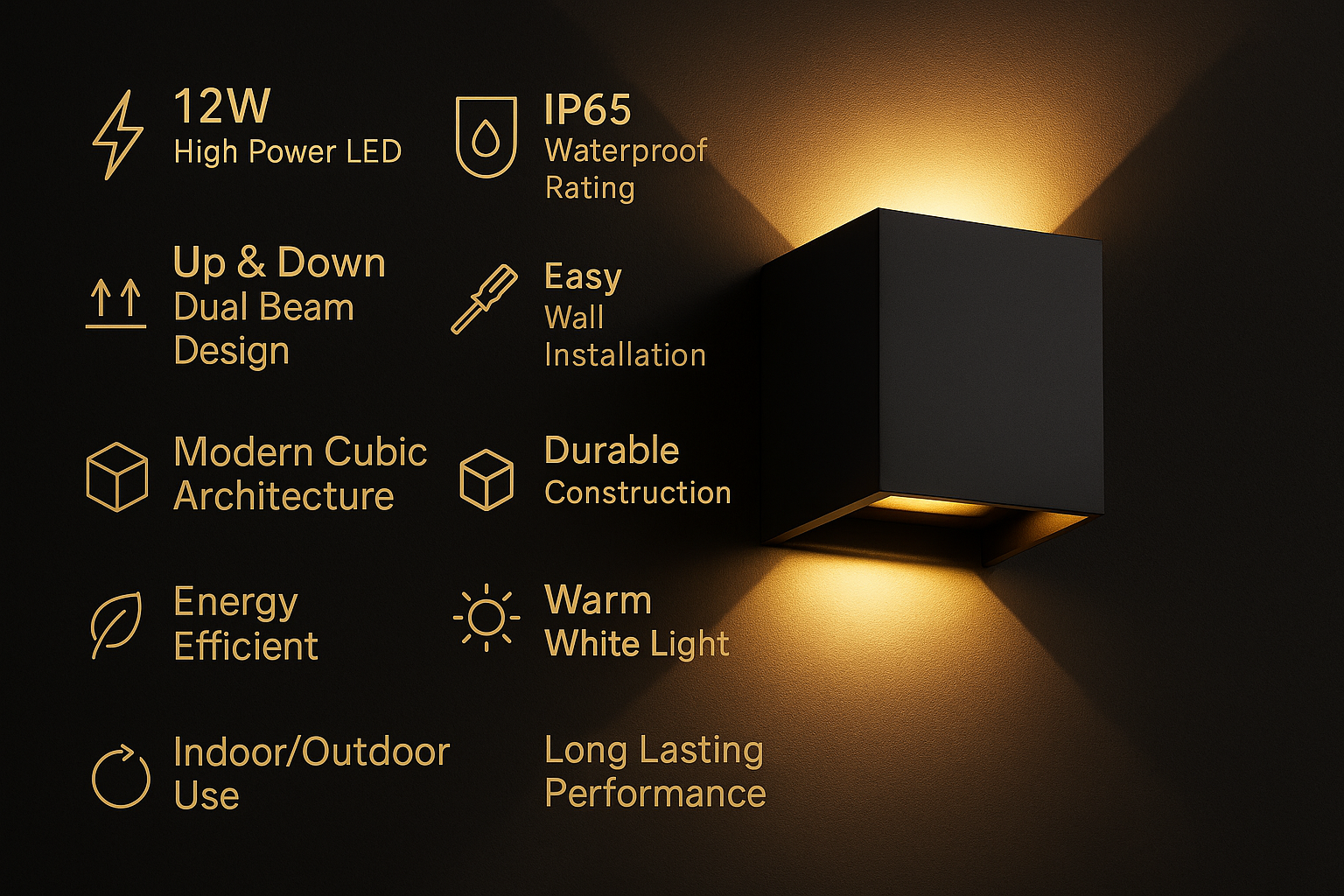 Enhance your indoor and outdoor spaces with the 12W Waterproof LED Outdoor Wall Light, a stylish and functional lighting solution built for performance and durability. Featuring a sleek black aluminium design, this modern wall light is ideal for gardens, patios, bathrooms, and hallways. With an IP65 waterproof rating, it stands up to the elements, while the adjustable beam angle lets you tailor the lighting to suit your space. Energy-efficient and long-lasting, this LED wall light offers bright, reliable illumination without compromising on style.