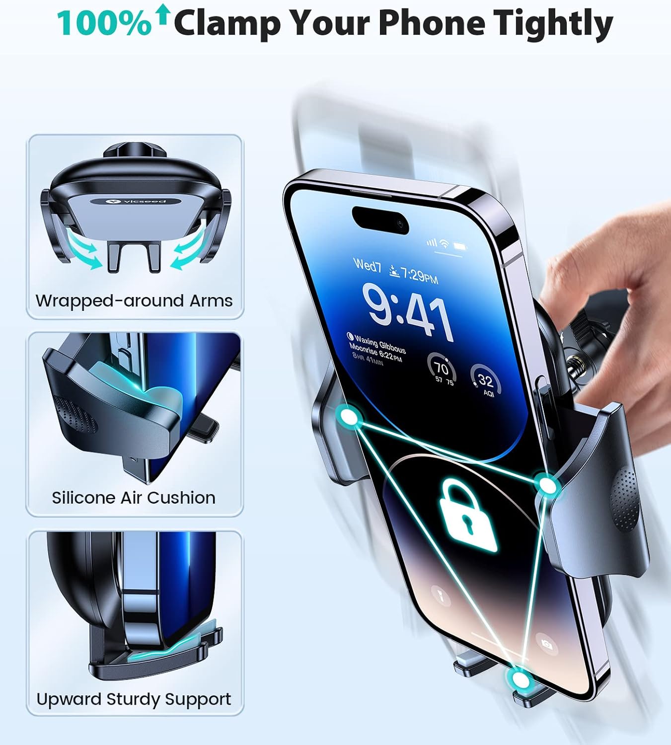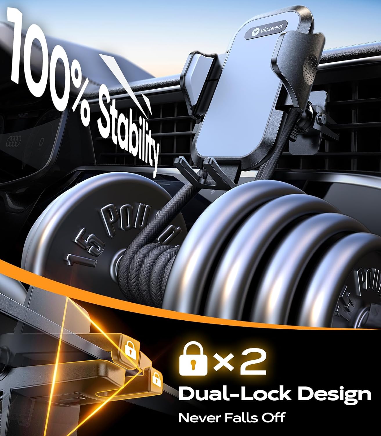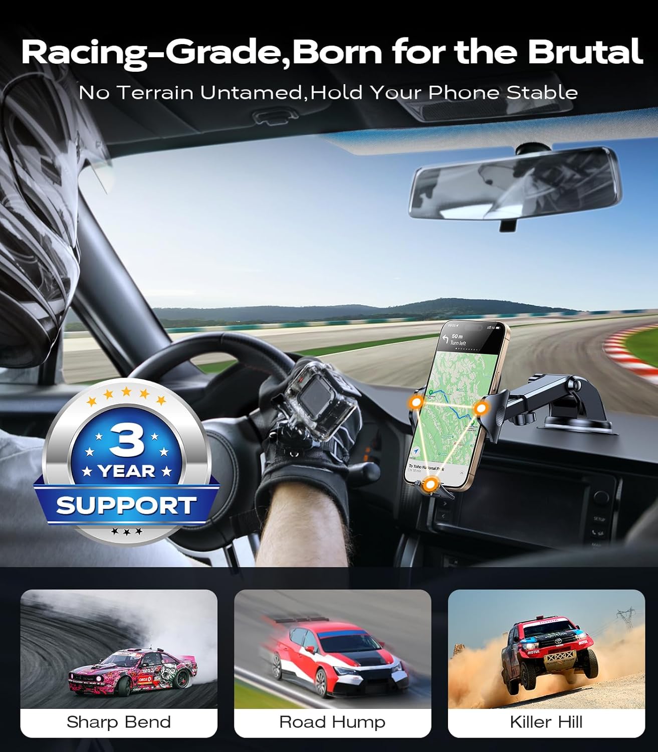 Our Rally Racing-Grade 3-in-1 Car Phone Holder is engineered for exceptional stability, strength, and versatility on the road. Certified with Military-Grade Shockproof standards and crafted under EU Grandmaster Design, this car mount is built for long-term reliability. The enhanced suction cup holds up to 88 lbs, ensuring your phone remains secure on dashboards, windscreens, or vents—even during intense driving conditions. With its 360° rotation, telescopic arm, and wide compatibility for big phones and thick cases, it provides safe, hands-free convenience for navigation and calls while keeping your focus on the road.