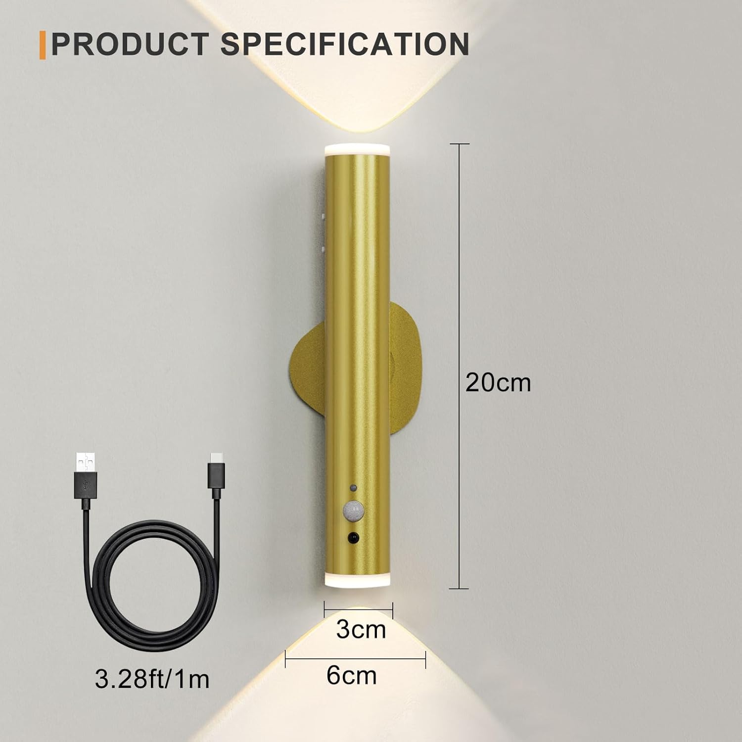 Rechargeable LED Wall Lights Set of 2 with Motion Sensor Remote