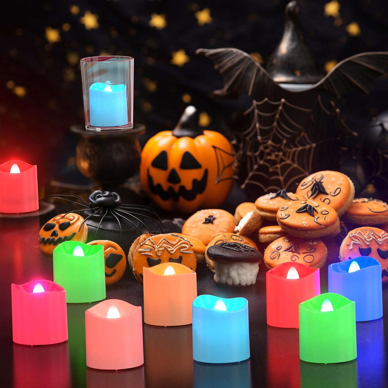 Enjoy 7 vibrant color options including warm white and vivid hues, ideal for enhancing candle holders, table settings, pumpkins, and festive décor.