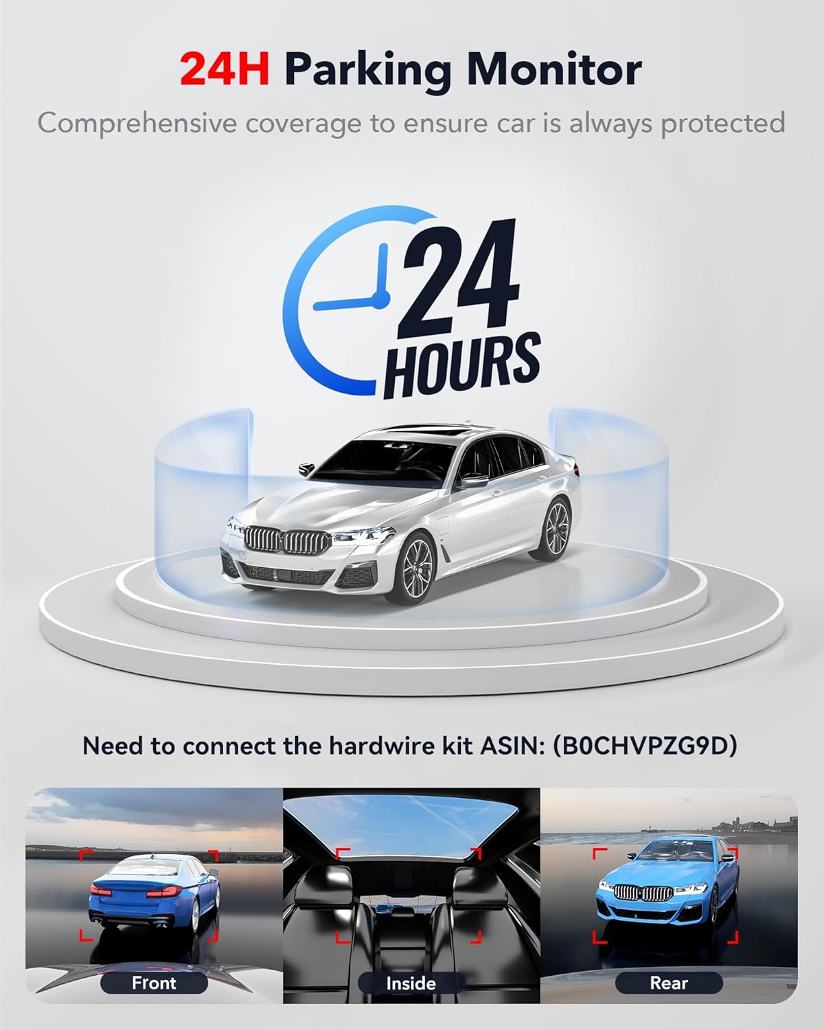 4K Ultra HD front camera with dual 1080P interior and rear recording for total 360° coverage
