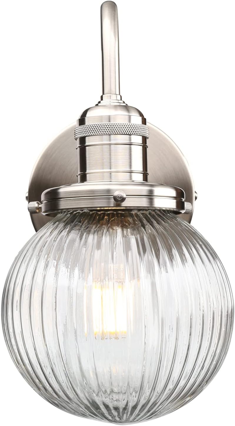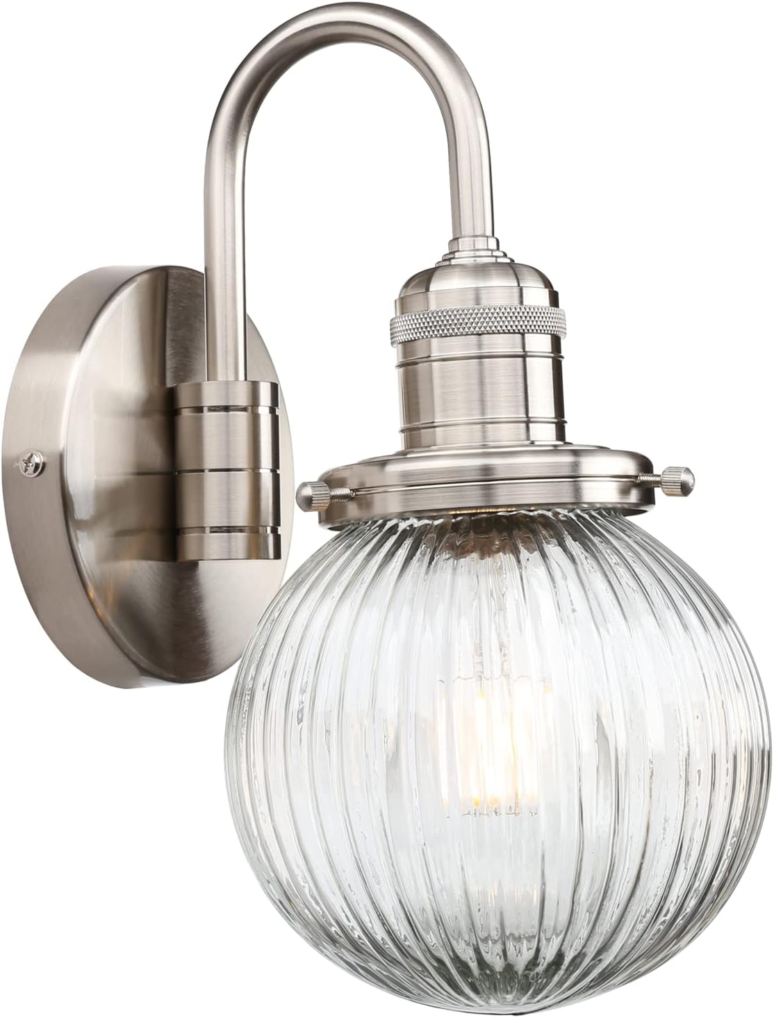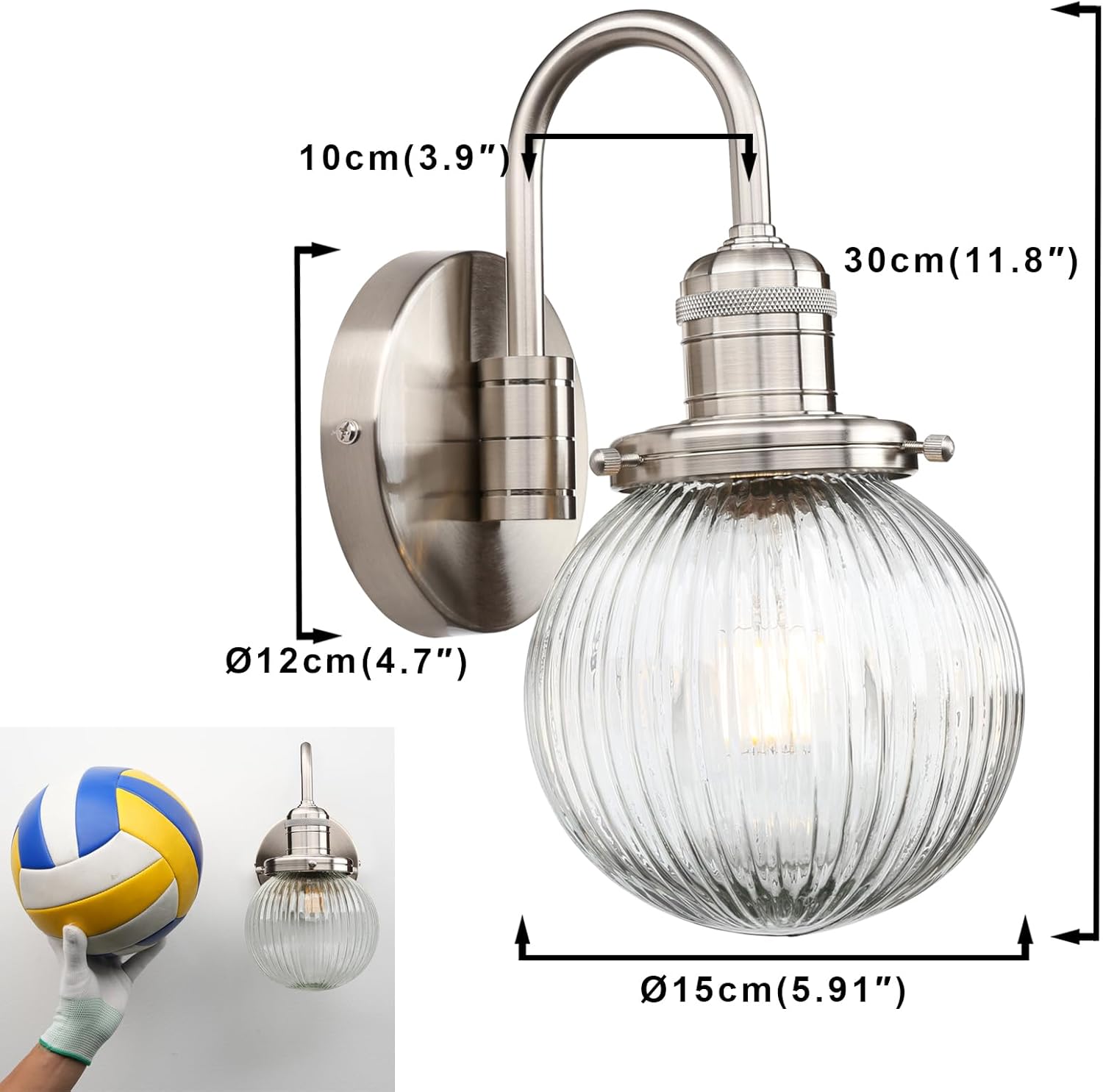 Our retro glass ribbed wall light is designed to deliver stylish and functional indoor lighting with a strong industrial character. Finished in an antique brushed metal body and paired with a ribbed clear glass globe shade, this wall sconce creates a striking visual impact while providing reliable illumination for everyday use. The fitting is hardwired and compatible with E27 screw bulbs, allowing use with LED or incandescent lamps, and it can be installed facing upward or downward to suit different lighting preferences across living rooms, bedrooms, kitchens, hallways, and dining areas.
