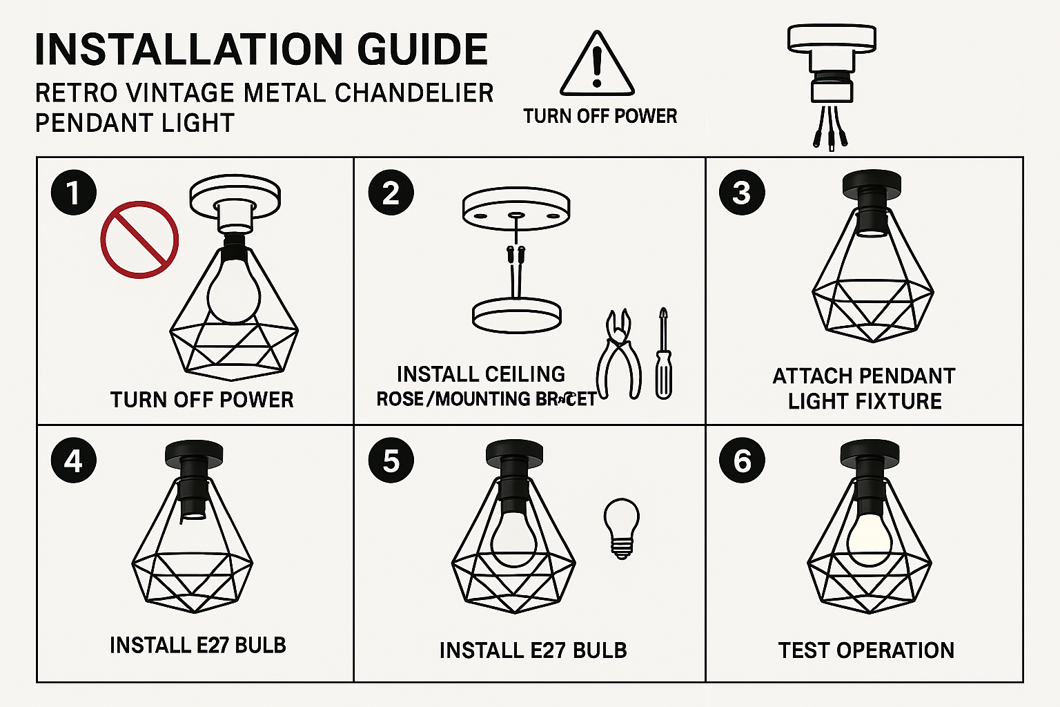 I installed this pendant light in my bedroom, and it completely transformed the space. The metal finish gives it an industrial vibe, and the warm white light is perfect for a cozy setting. Installation was easy, and it looks great!