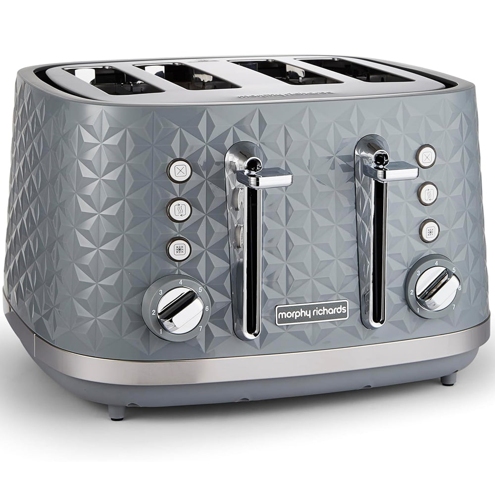 Our 4 Slice Toaster in High Gloss Grey combines stylish geometric design with everyday practicality. Featuring variable width slots, it’s perfect for toasting thick bread, bagels, or crumpets with consistent results. The illuminated buttons allow you to easily select defrost, reheat, or cancel functions, while the auto pop-up ensures safe and quick removal of your toast. Designed with a removable crumb tray for effortless cleaning, this modern toaster adds a touch of sophistication and convenience to any kitchen.