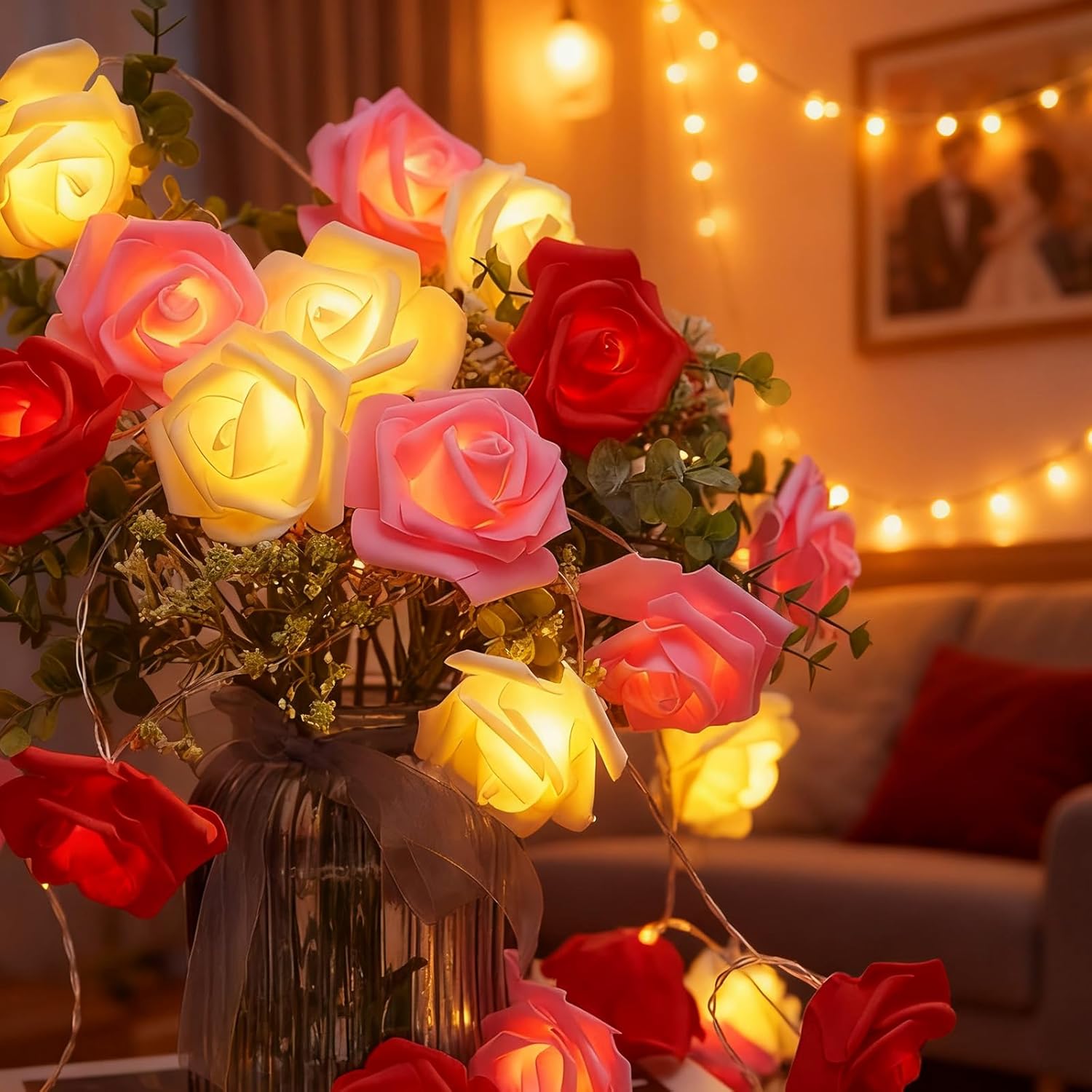 Pre-assembled for convenience, these rose fairy lights can be easily placed or hung on walls, windows, doors, mirrors, or decorative displays. Perfect for Valentine’s Day, weddings, anniversaries, festive décor, or gifting, they help create a warm, romantic, and inviting atmosphere for special moments and celebrations.