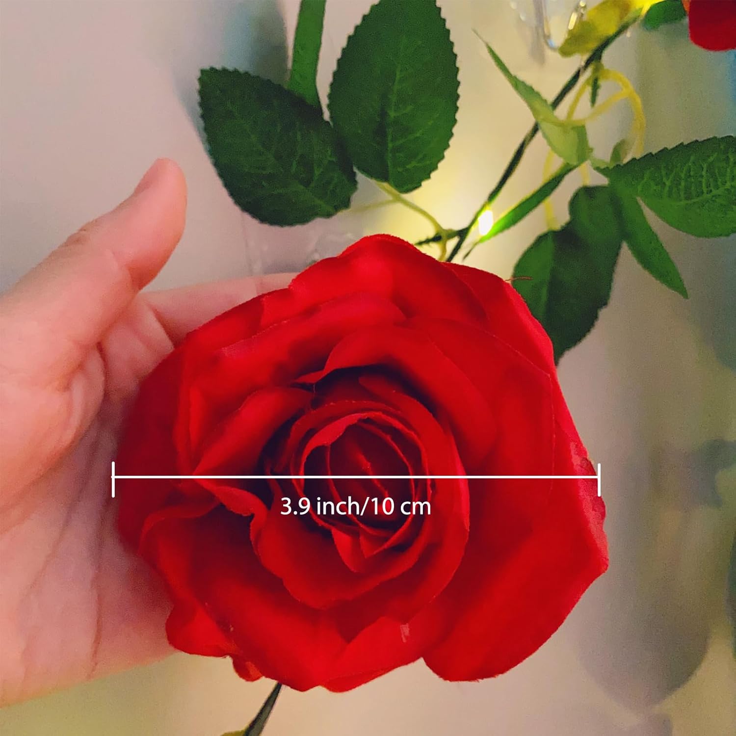 Enhance your space with these rose vine string lights designed to bring a warm and romantic atmosphere to indoor décor. This artificial flower garland measures 6.56 feet in length and features lifelike red roses combined with softly glowing LED lights. The flowers and leaves are crafted from cloth material, while the flexible plastic stems allow easy shaping for a natural and elegant appearance.