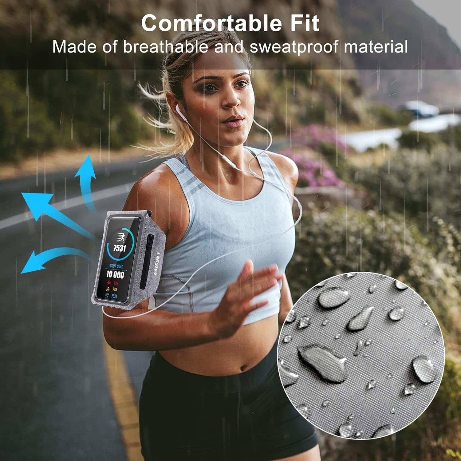 Water-resistant Lycra fabric keeps your phone protected from sweat and moisture