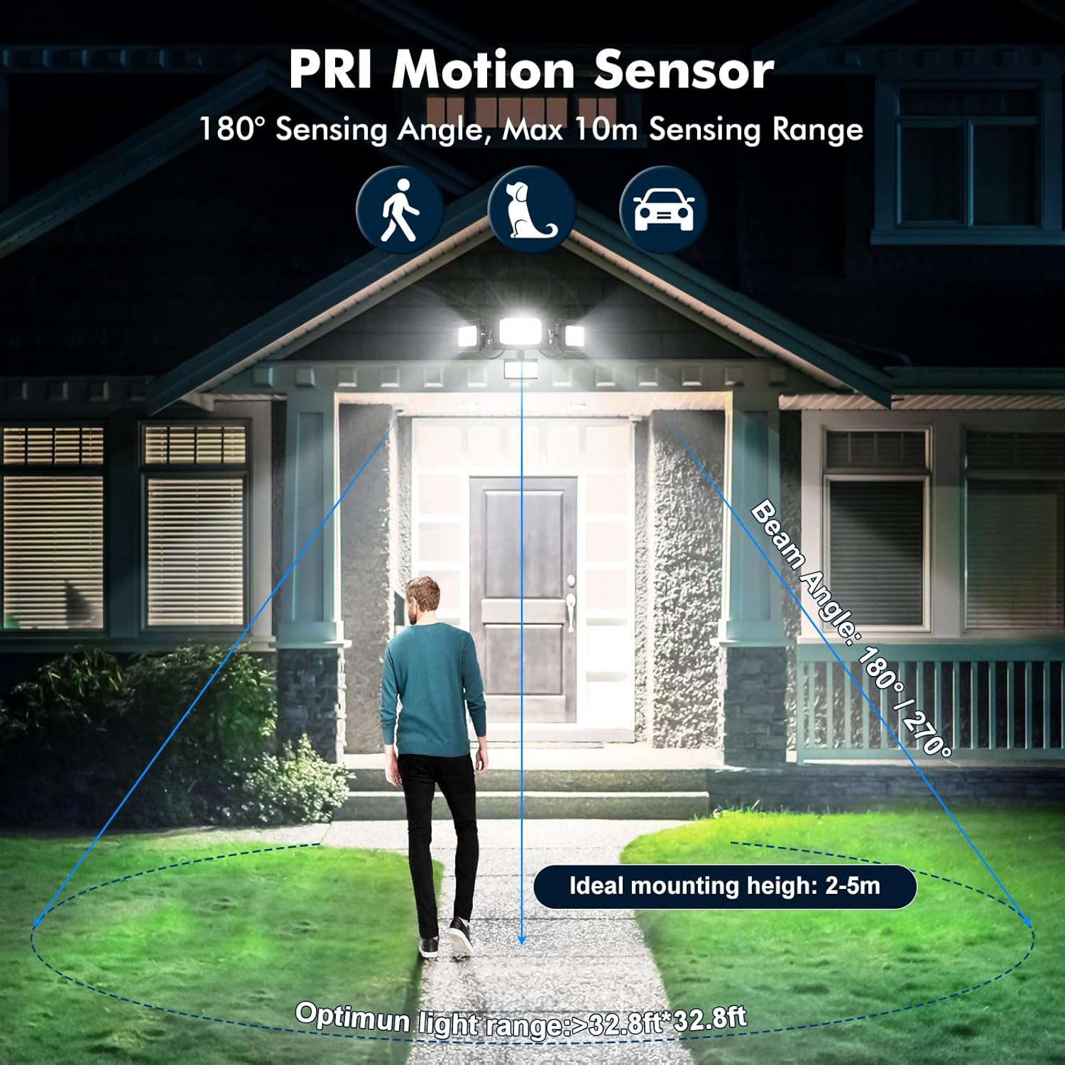 Security Lights Outdoor 100W LED Floodlight with PIR Motion Sensor IP65