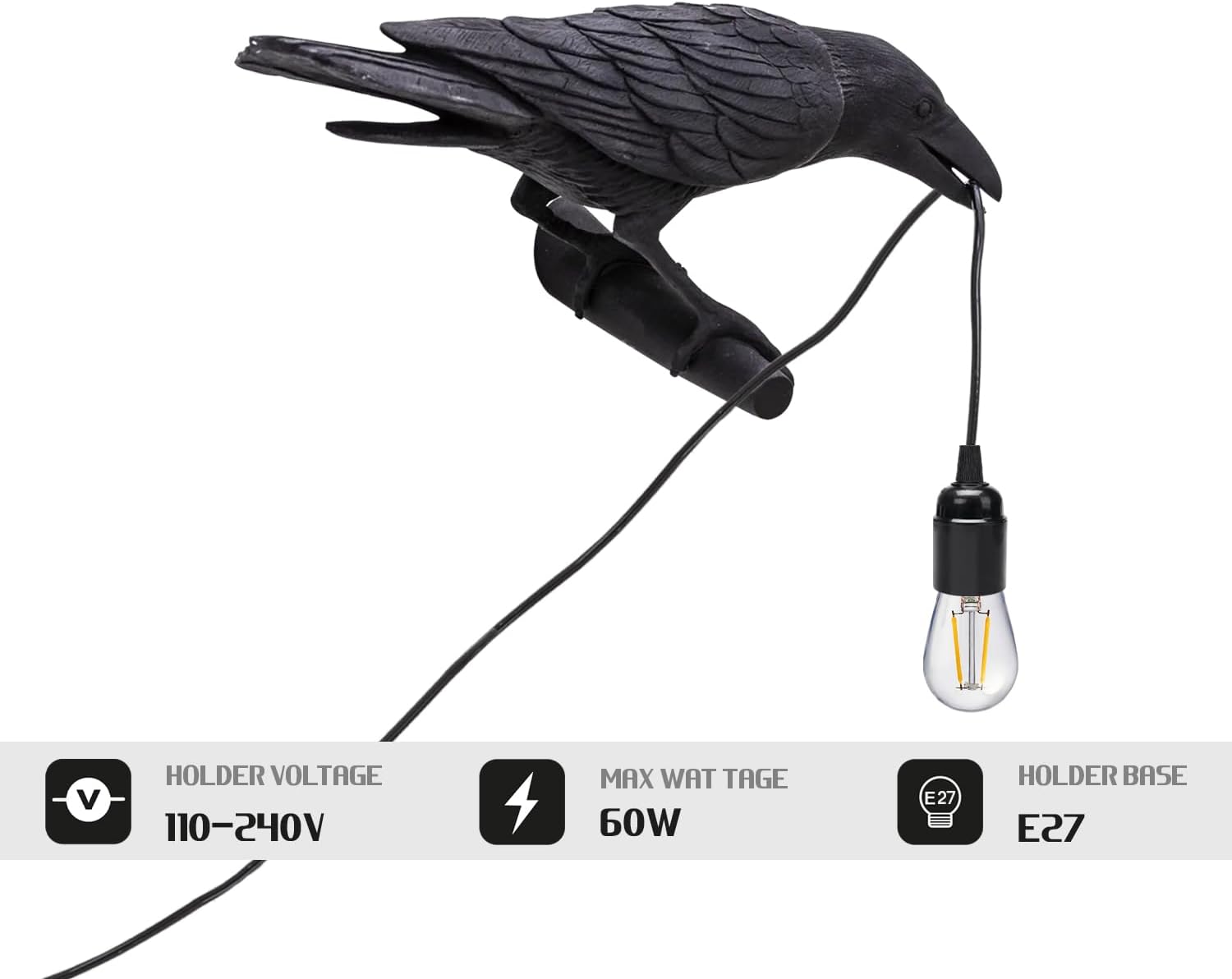 - Unique raven bird wall lamp design holding the bulb in its beak